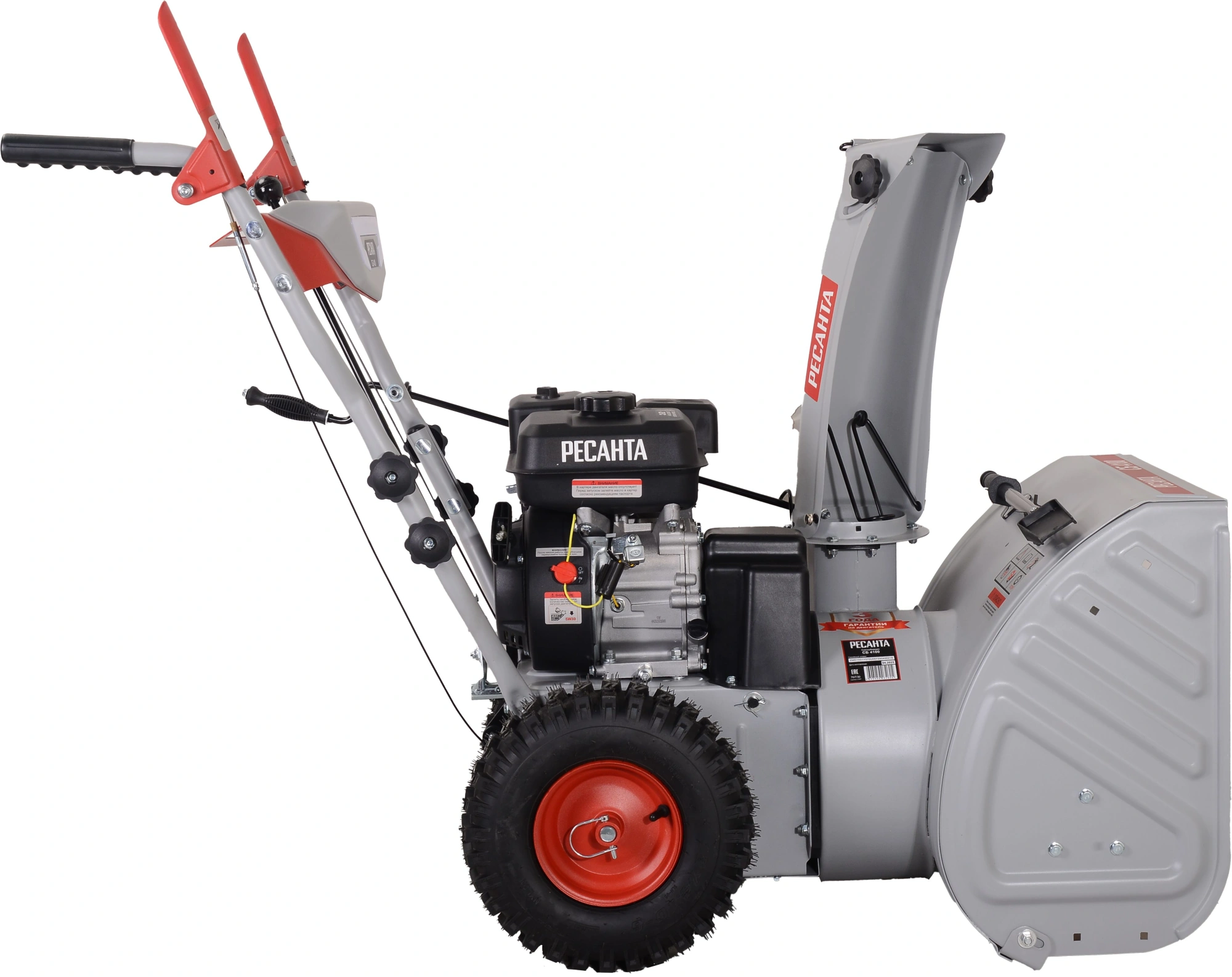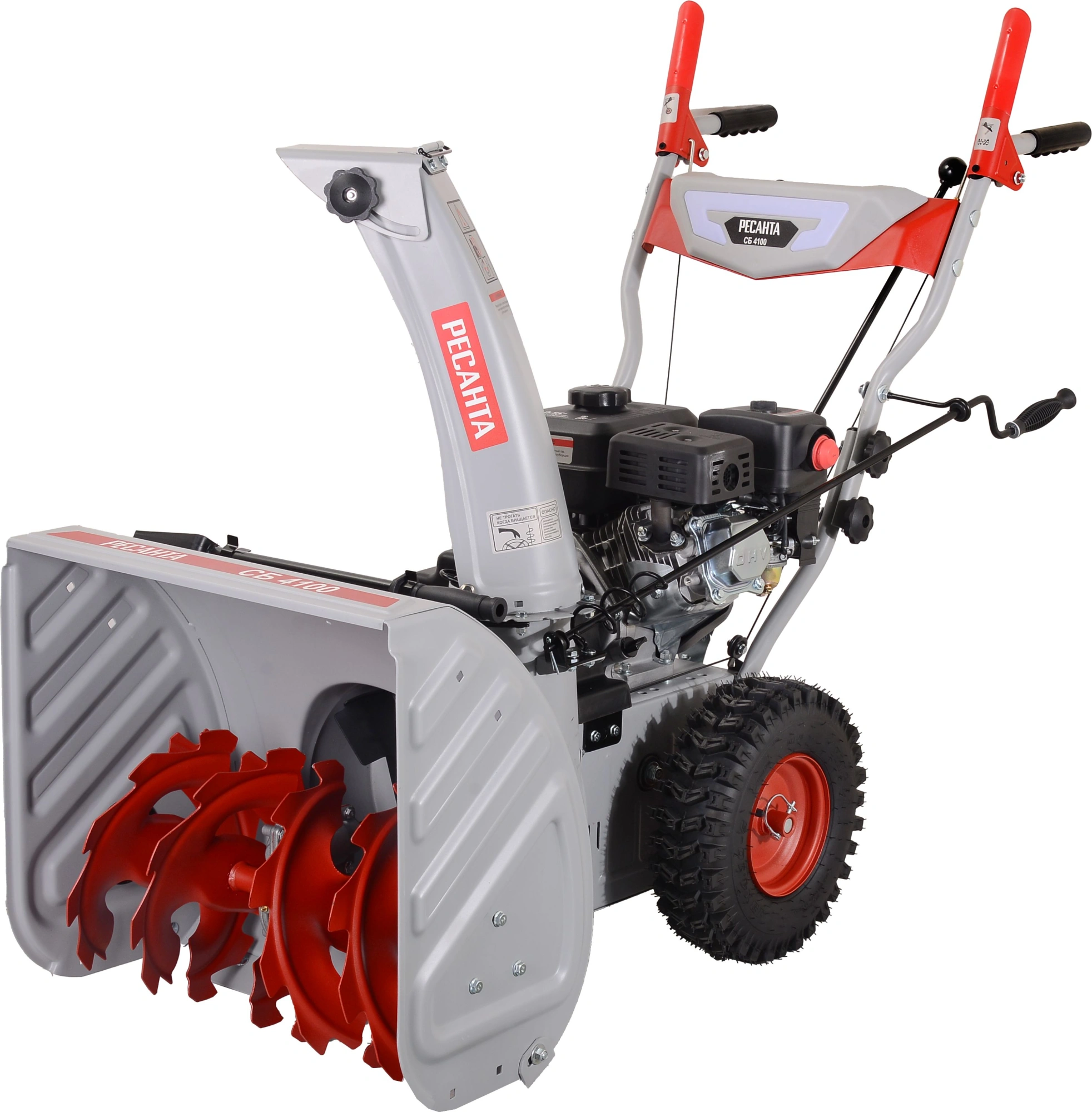 Снегоуборщик бензиновый Ресанта СБ 4100 предназначен для расчистки небольших территорий от снега. Специальным рычагом можно установить удобное направление выброса снега. Металлический шнек может измельчает заледенелый, плотный или мокрый снег.