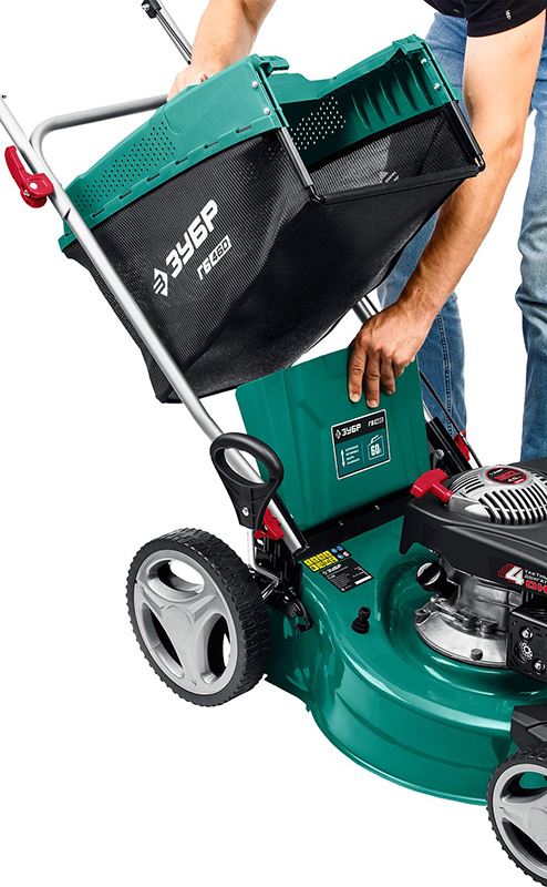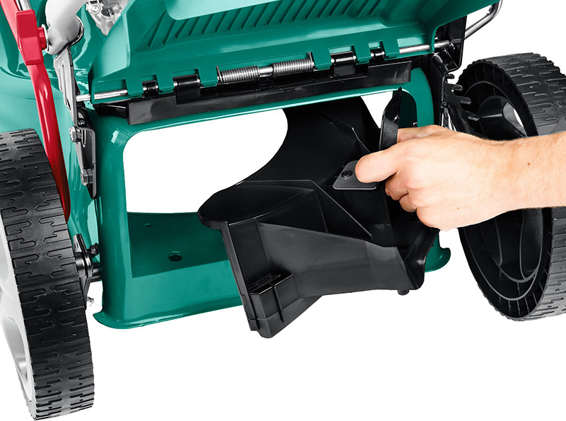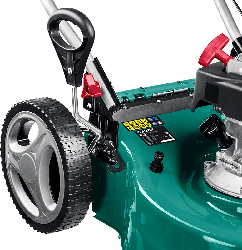 мульчирование, регулировка высоты скашивания, регулировка ручки по высоте, ручки для транспортировки, складная ручка