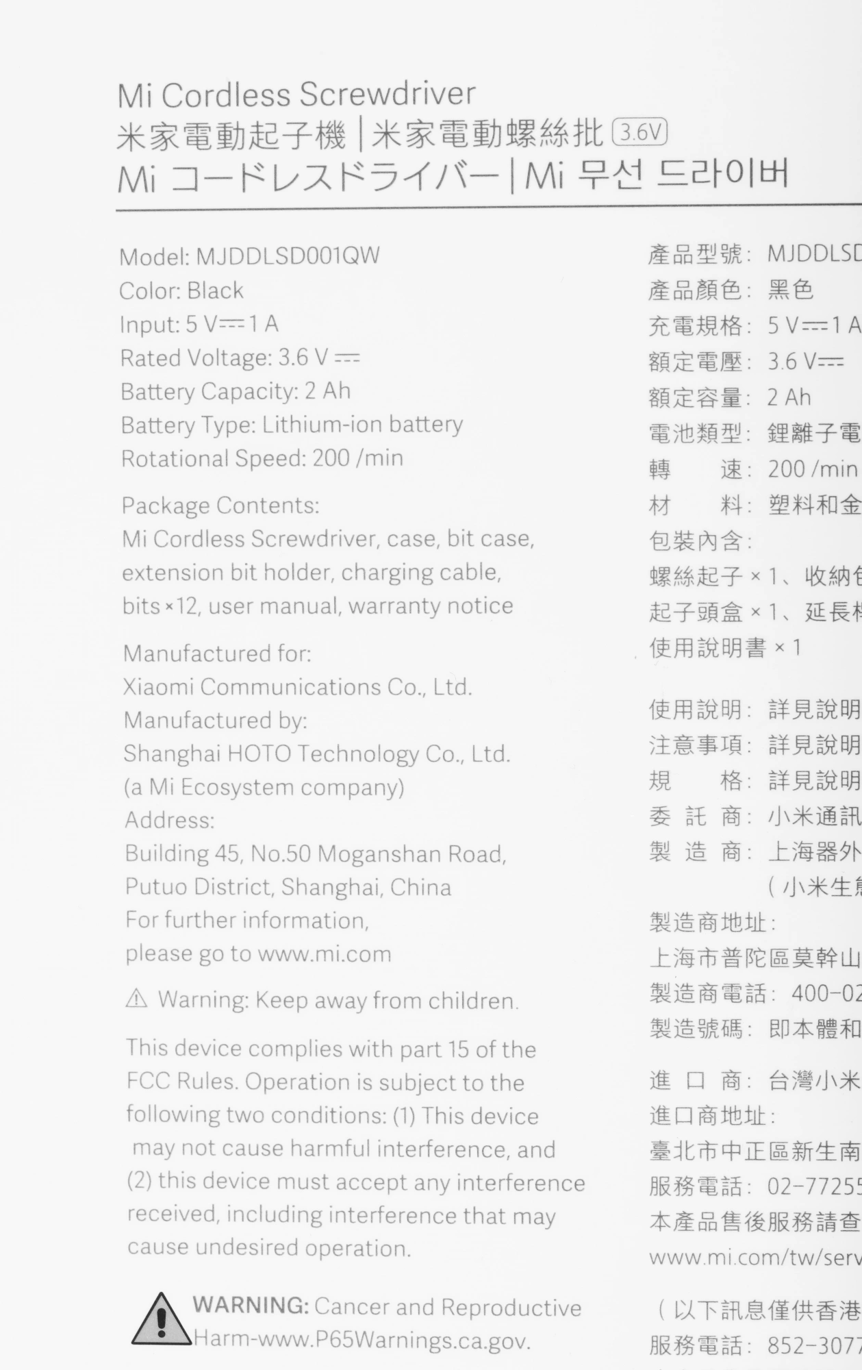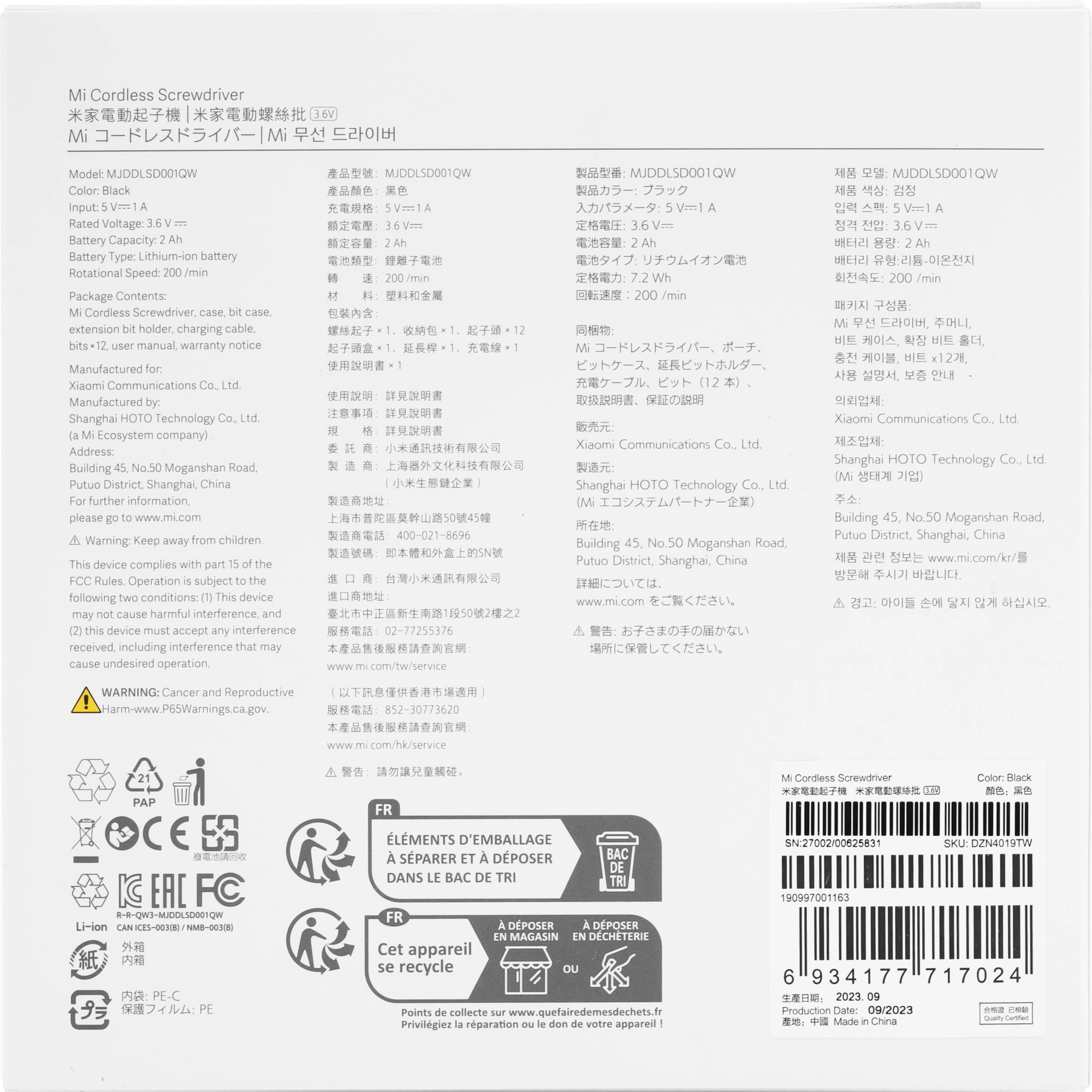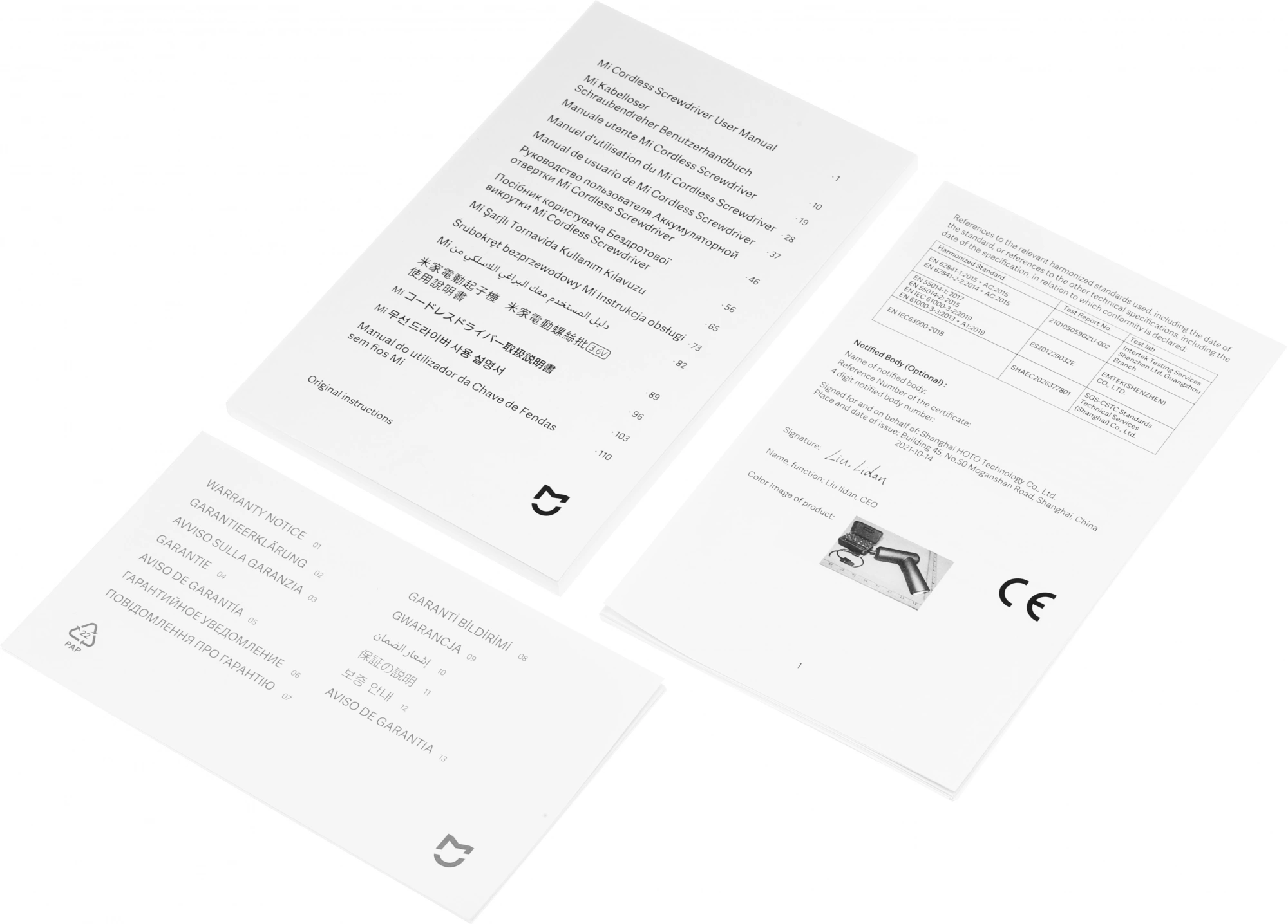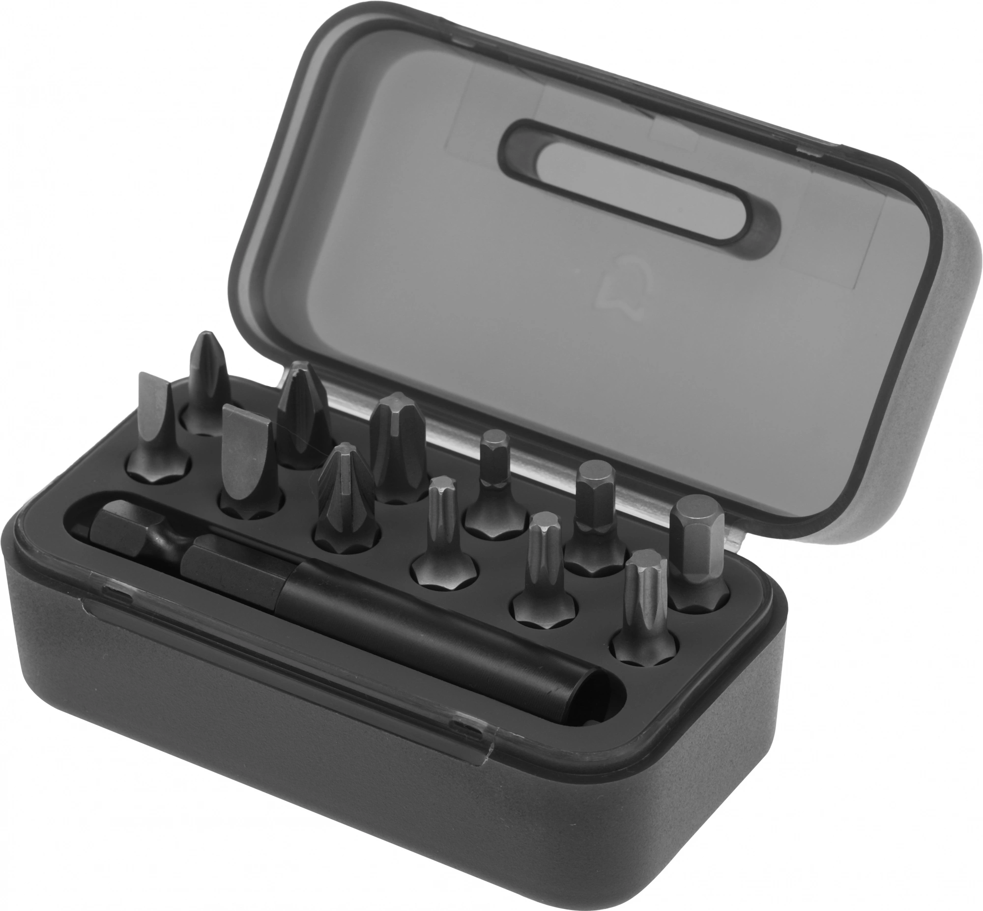 Шуруповерт, кейс хранения, кейс для насадок, удлинитель, насадки х12 шт., кабель питания, документация