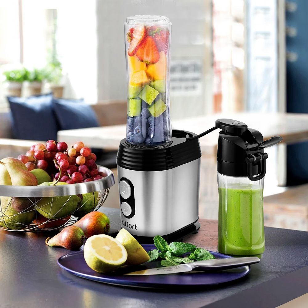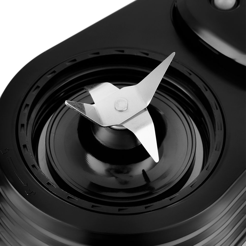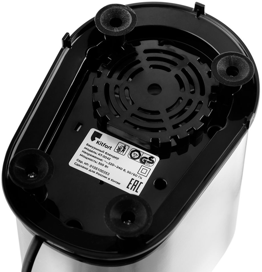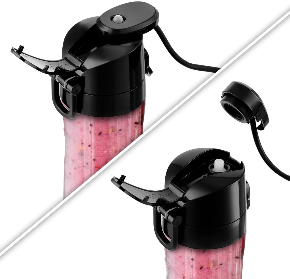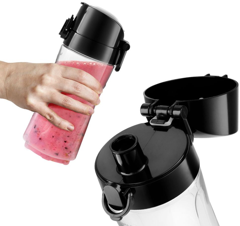 Отличительной особенностью данной модели является возможность откачки воздуха из бутылки после приготовления блюда или напитка – так готовый продукт сможет дольше сохранить свежесть, полезные свойства и аромат. Блендер оснащён двумя бутылками ёмкостью 400 и 600 мл с мерной шкалой.