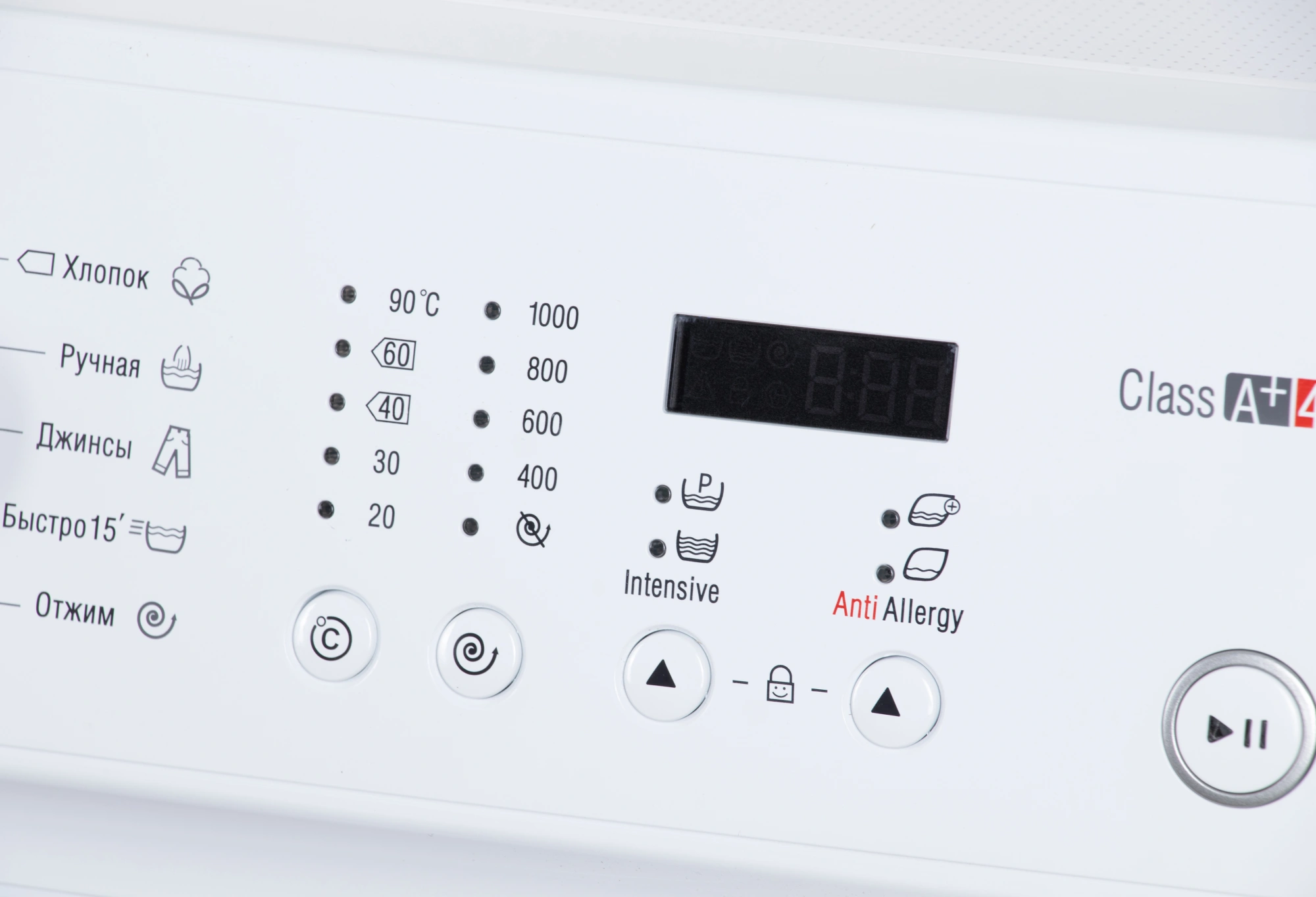 Предварительная стирка, Дополнительное полоскание (Anti Allergy), Добавление воды на всех этапах стирки, Интенсивная стирка (Intensive)
