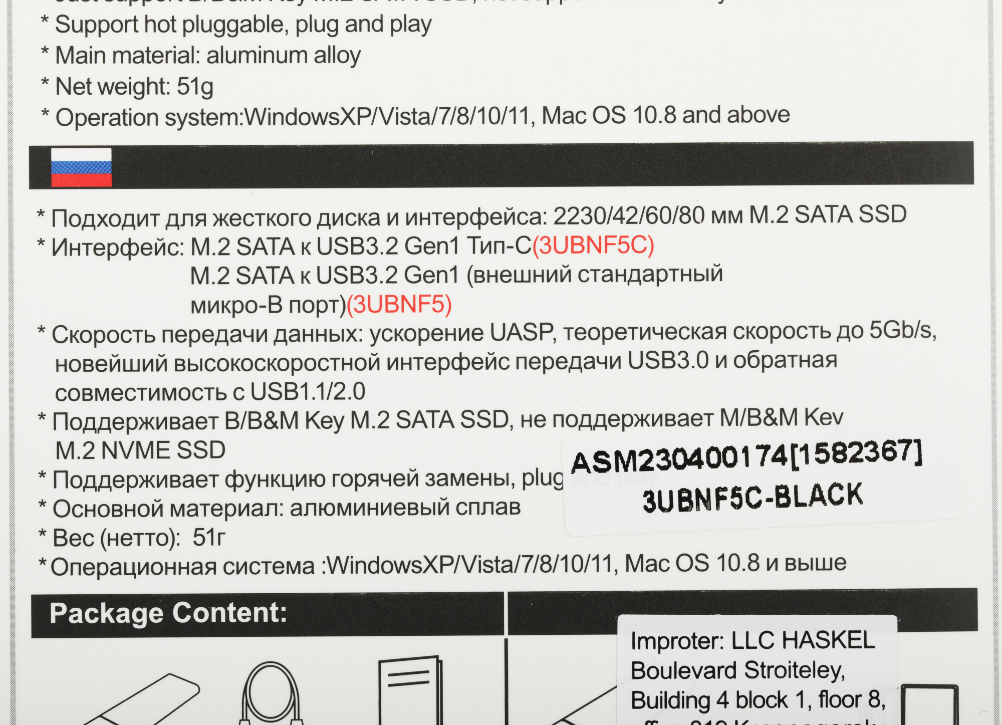 SATA III USB 3.0 USB 3.0 Type-С алюминий черный M2...