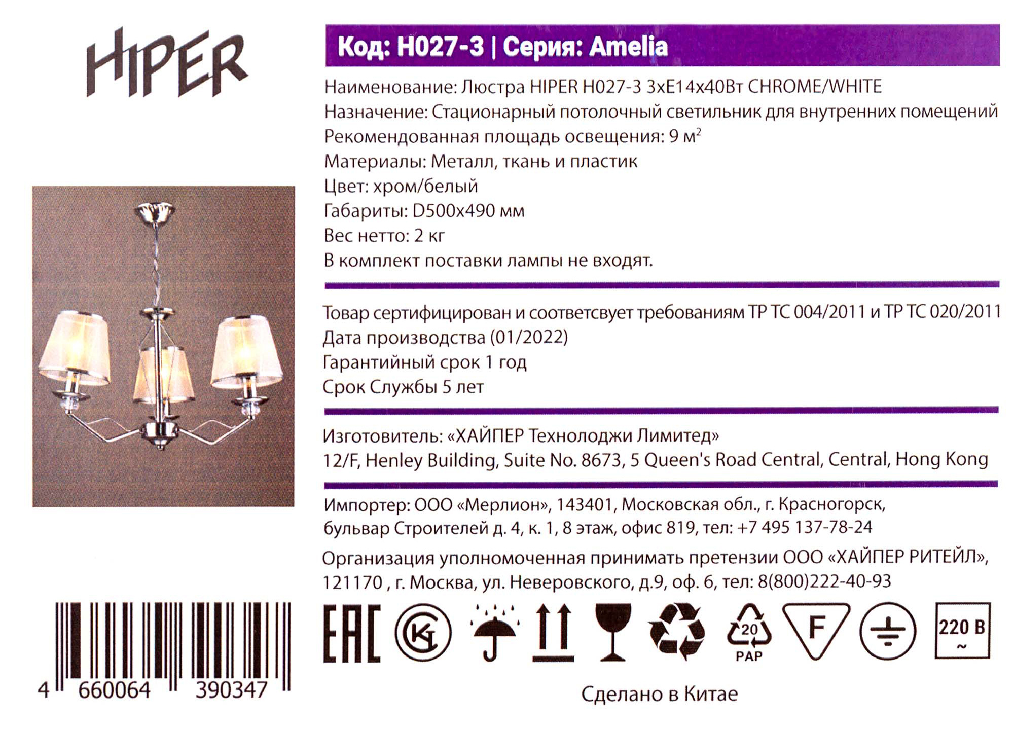 Люстра Hiper Amelia H027-3