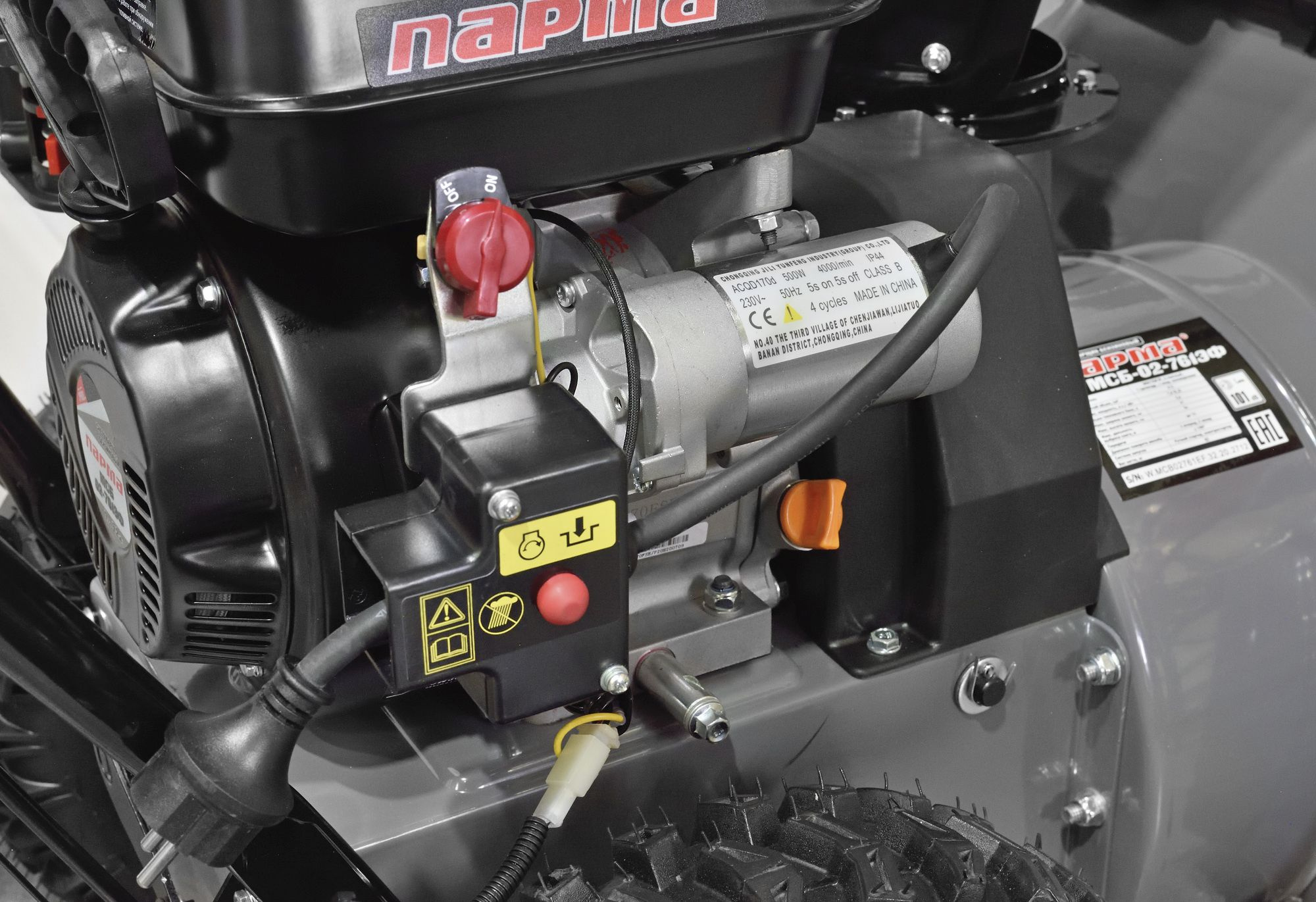 Самоходный снегоуборщик. Собранный снег выбрасывается на расстояние до 15 метров. Есть возможность выбрать сторону для сброса снежной массы. Используемая система шнеков – двухступенчатая. Ручной стартер и электростартер. Фара. Ширина ковша - 610 мм. 4 скорости вперед, 2 - назад. Мощность - 7 л.с.