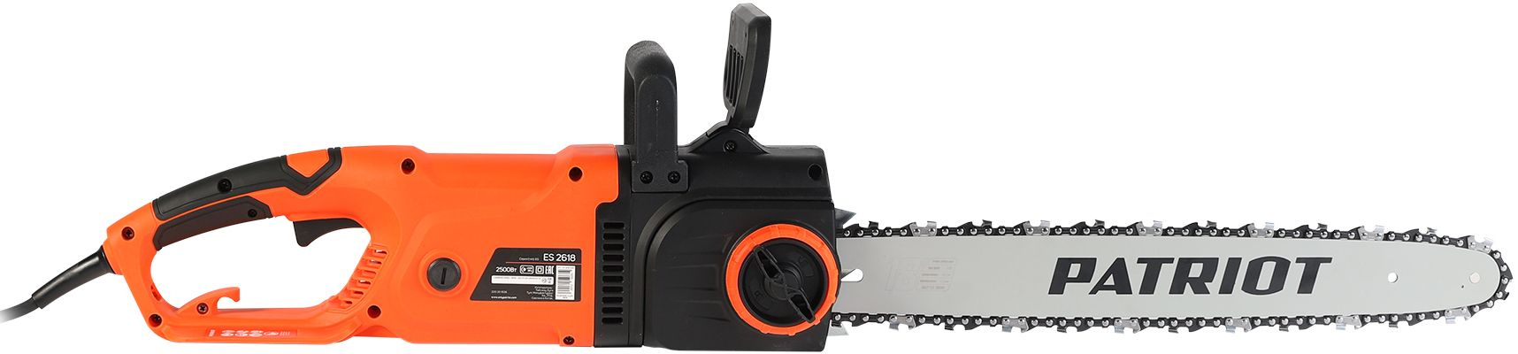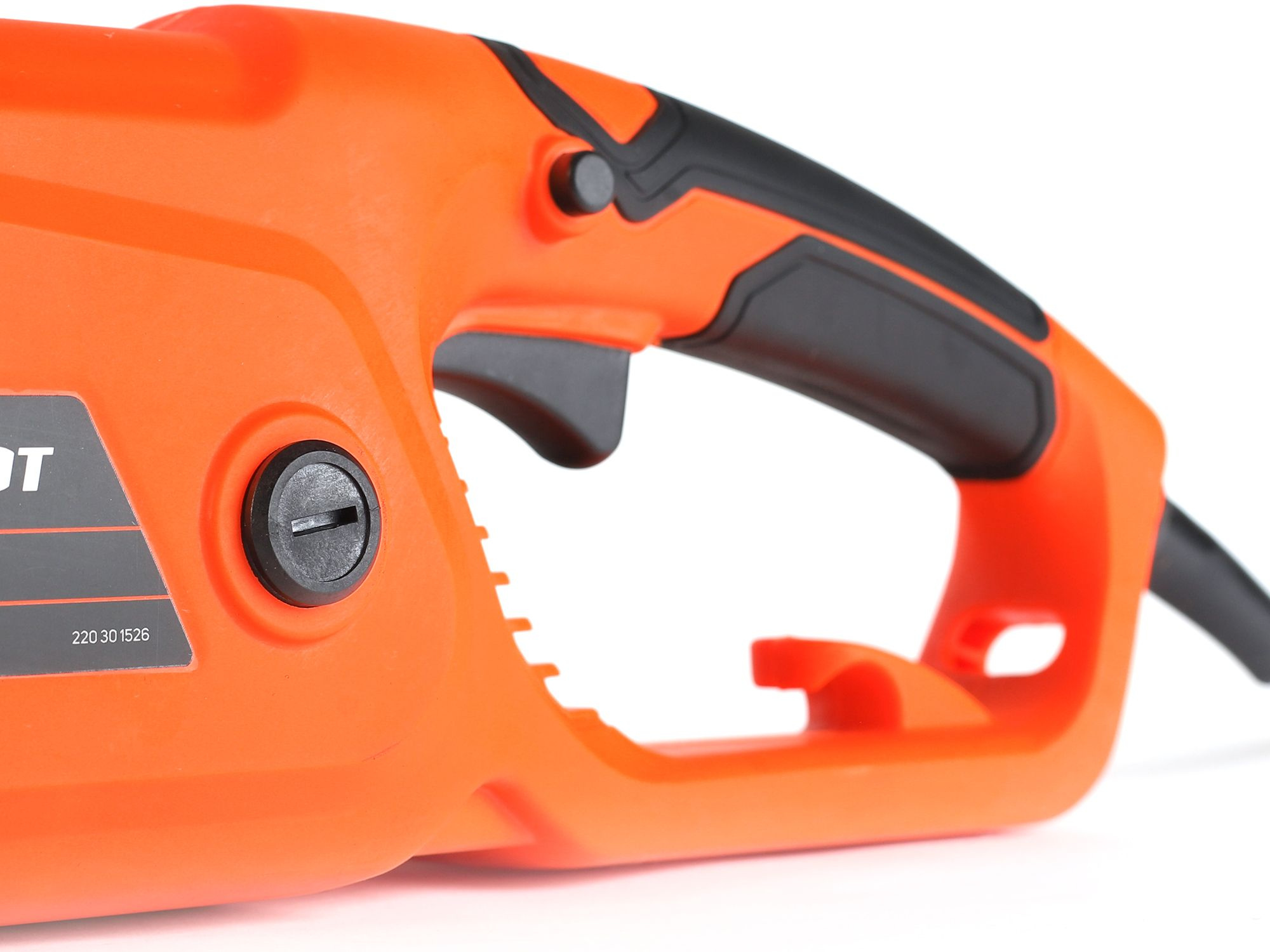 Рычаг инерционного тормоза - экстренное торможение пильной цепи в случае её отскока, предусмотрена скоба крепления сетевого кабеля