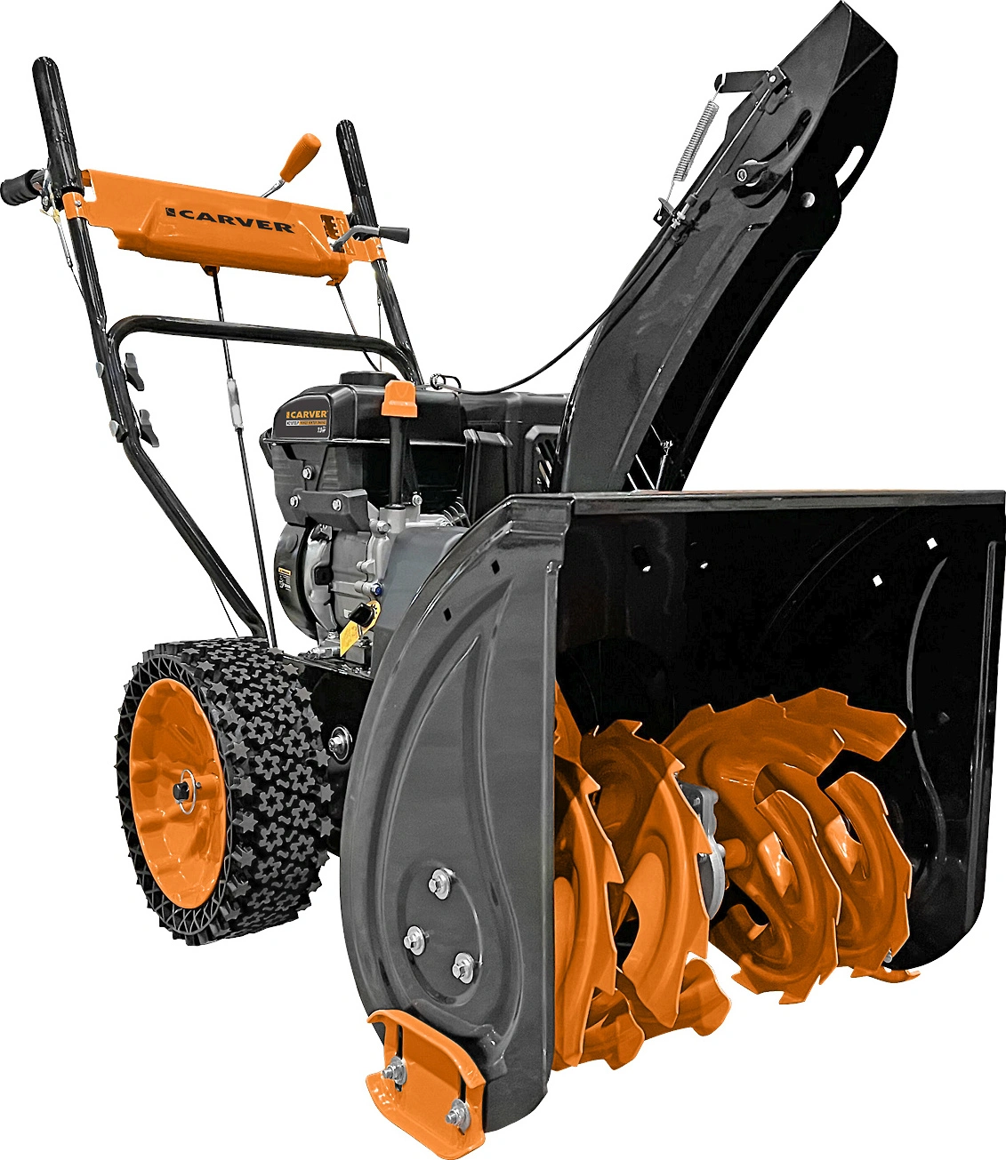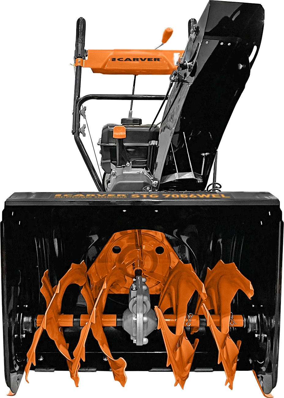 Бензиновый снегоуборочник. Снегоуборщик используют для уборки легкого, а также слежавшегося и обледенелого снега. Оснащен металлическим шнеком.