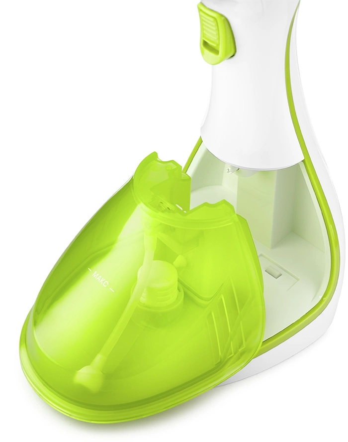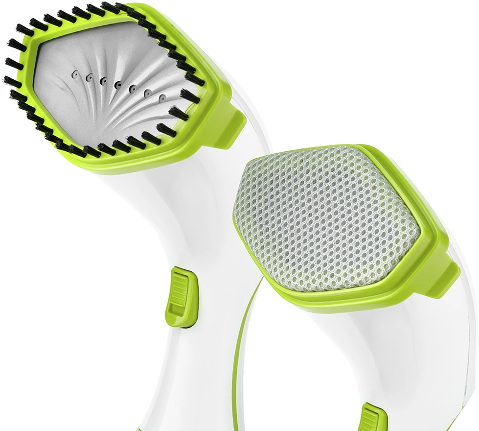 В комплекте с ручным отпаривателем идут 2 насадки. Ворсовая легко чистит загрязнённые поверхности, а также убирает шерсть домашних животных, волосы, ворс. Тканевая насадка необходима при работе с деликатными тканями.