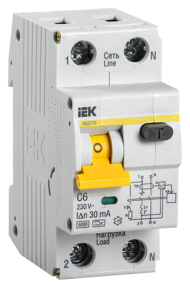 6A тип C 6kA 30мА A 1П+Н 230В 2мод белый (упак.:1...