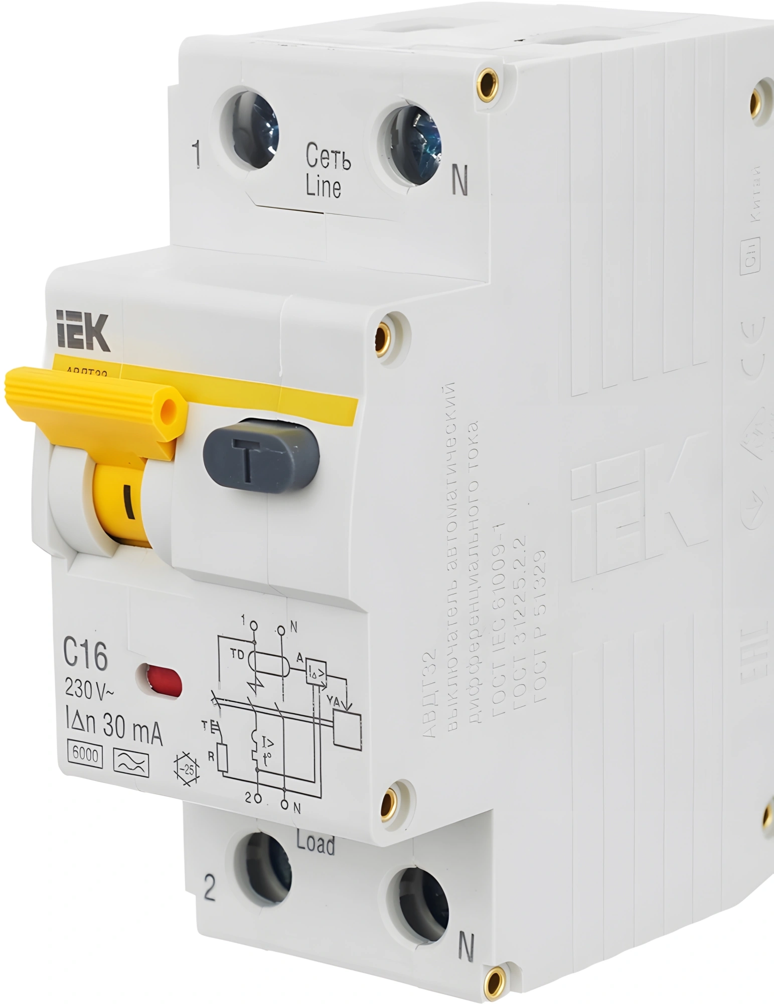 16A тип C 6kA 30мА A 1П+Н 230В 2мод белый (упак.:...