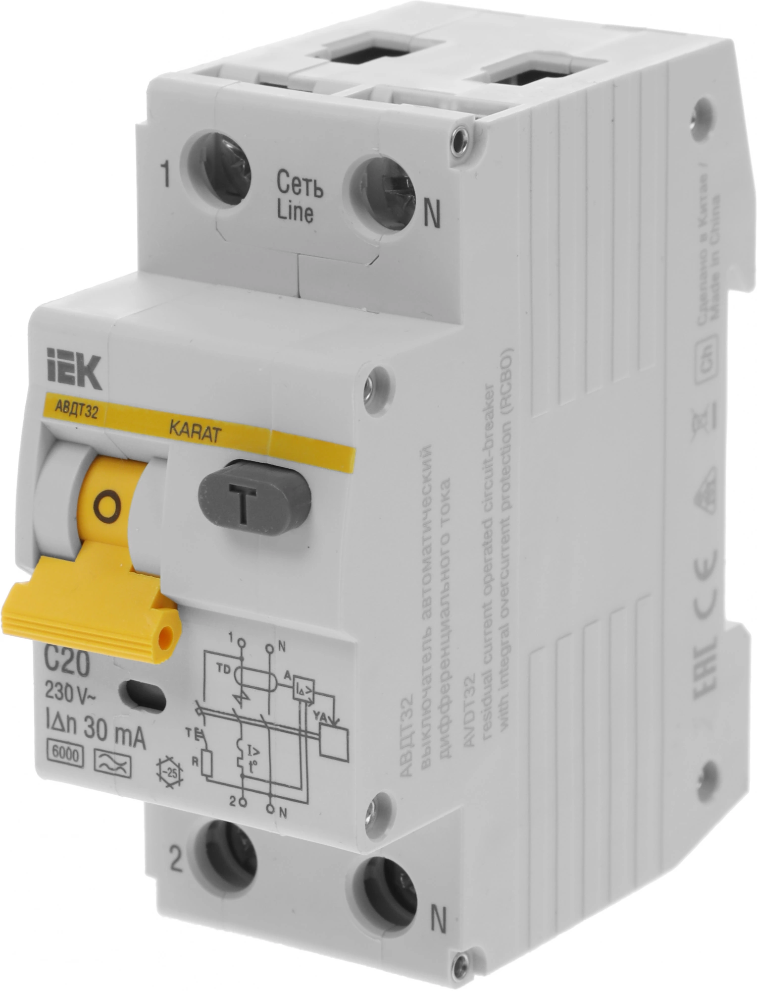 20A тип C 6kA 30мА A 1П+Н 230В 2мод белый (упак.:...