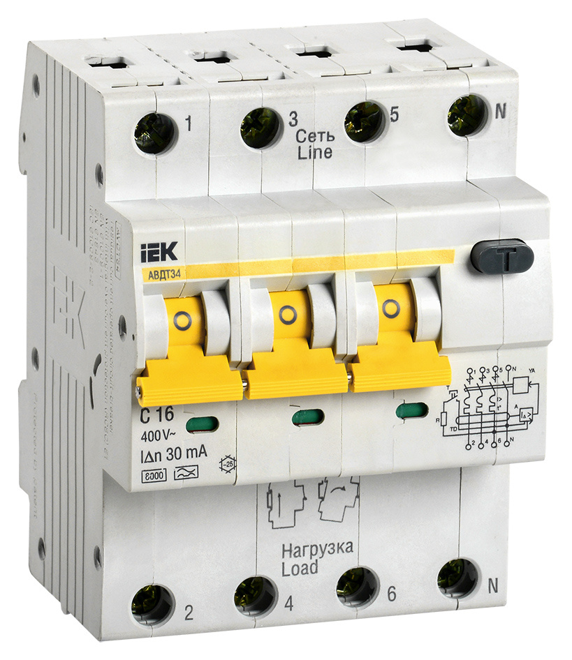 16A тип C 6kA 30мА A 4П 400В 4мод белый (упак.:1ш...