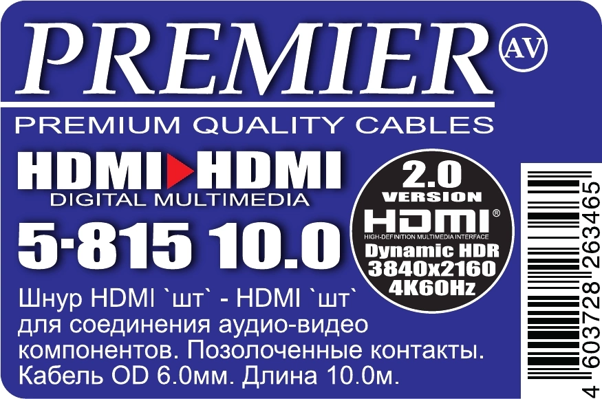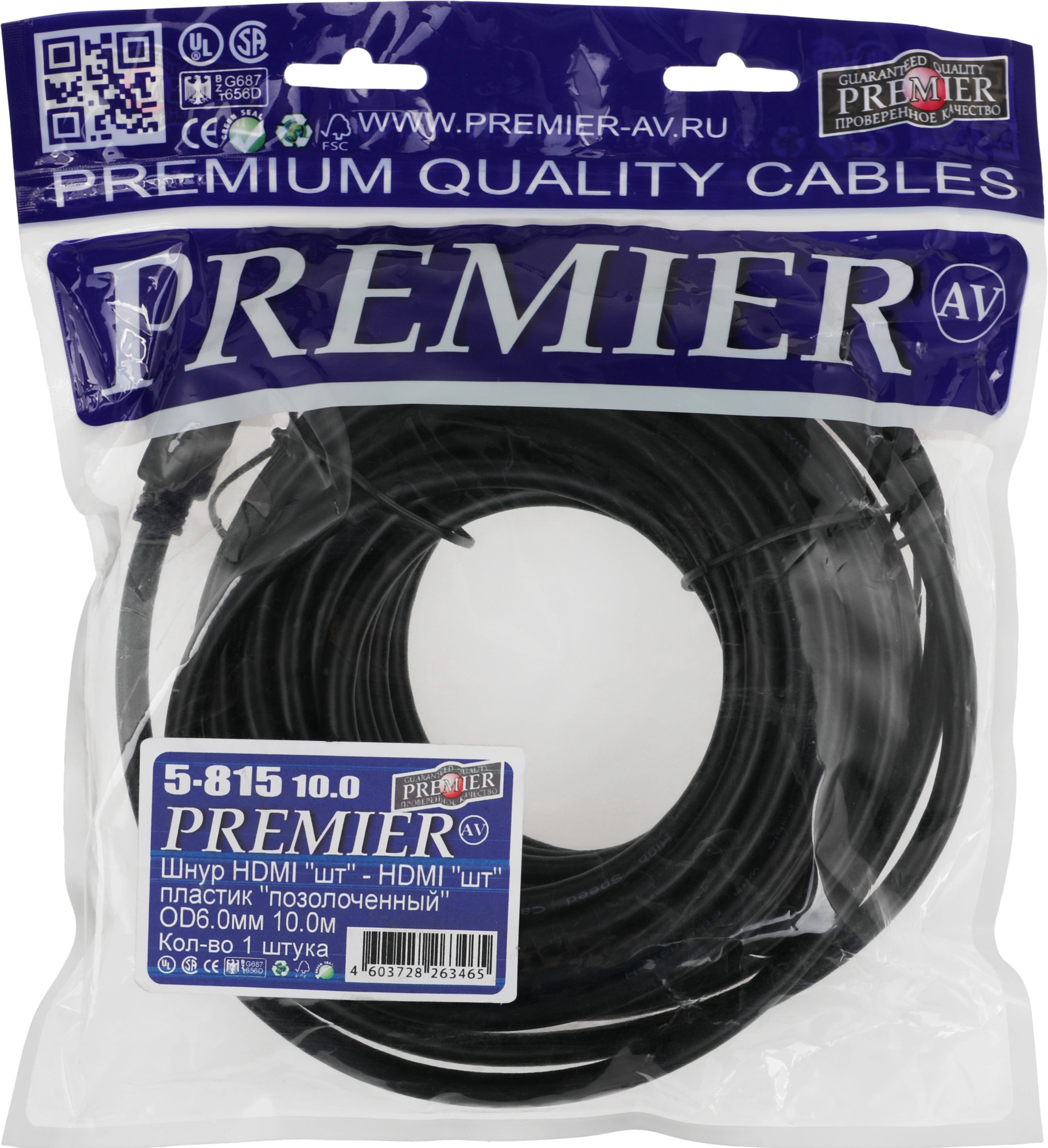 Кабель соединительный аудио-видео Premier HDMI (m)/HDMI (m) 10м. черный (5-815 10.0)