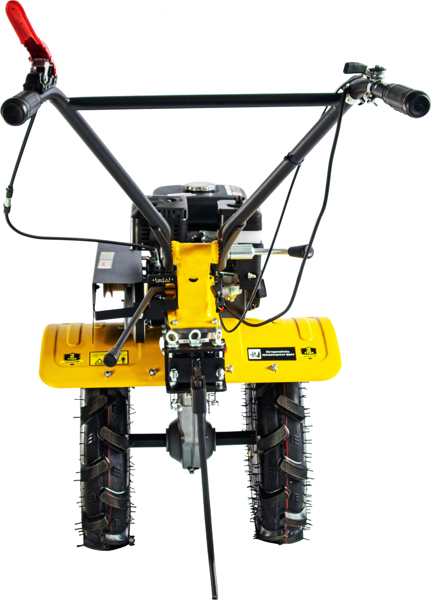 Мотоблок, фрезы 8шт, ручка управления в сборе, сошник, пневмоколеса - 2 шт., защитные крылья - 2 шт., комплект крепежа, паспорт(инструкция).