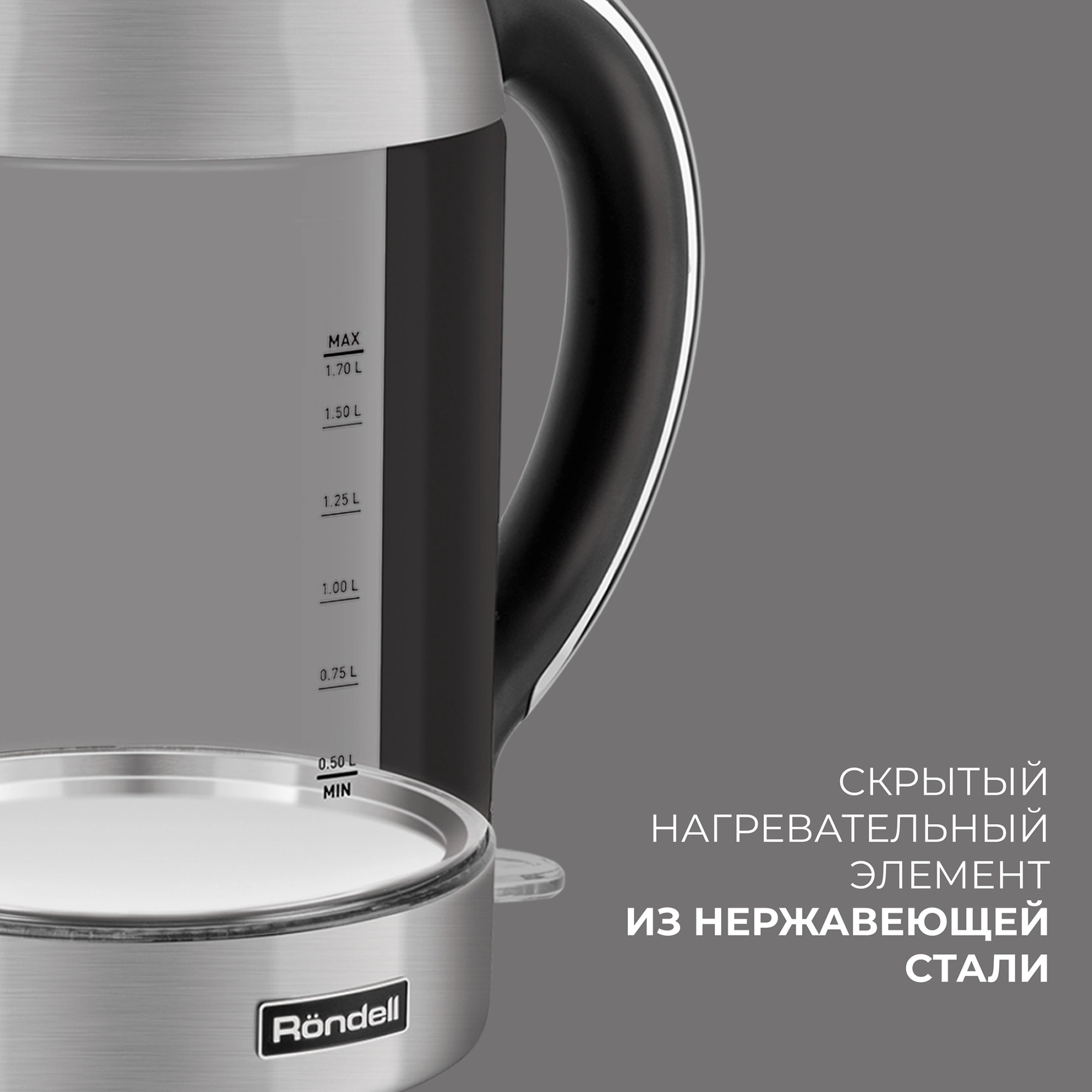 1.7л. 2200Вт серебристый корпус: стекло/металл (RD...