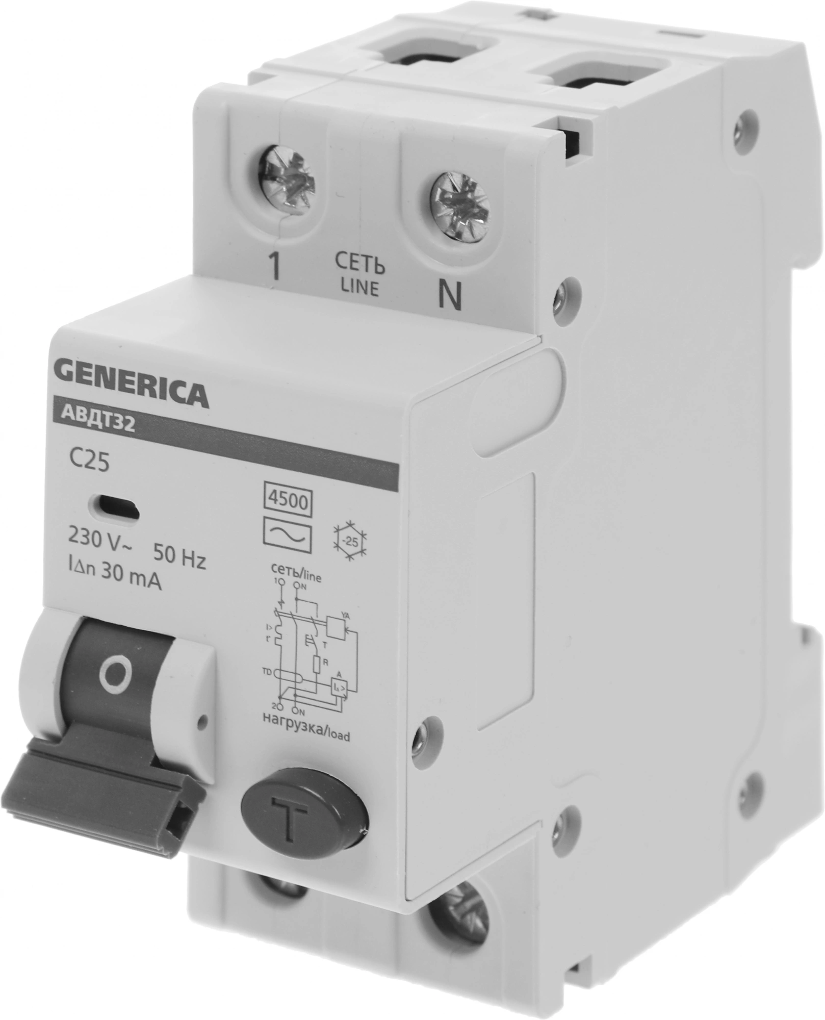 25A тип C 6kA 30мА AC 2П 230В 2мод серый (упак.:1...