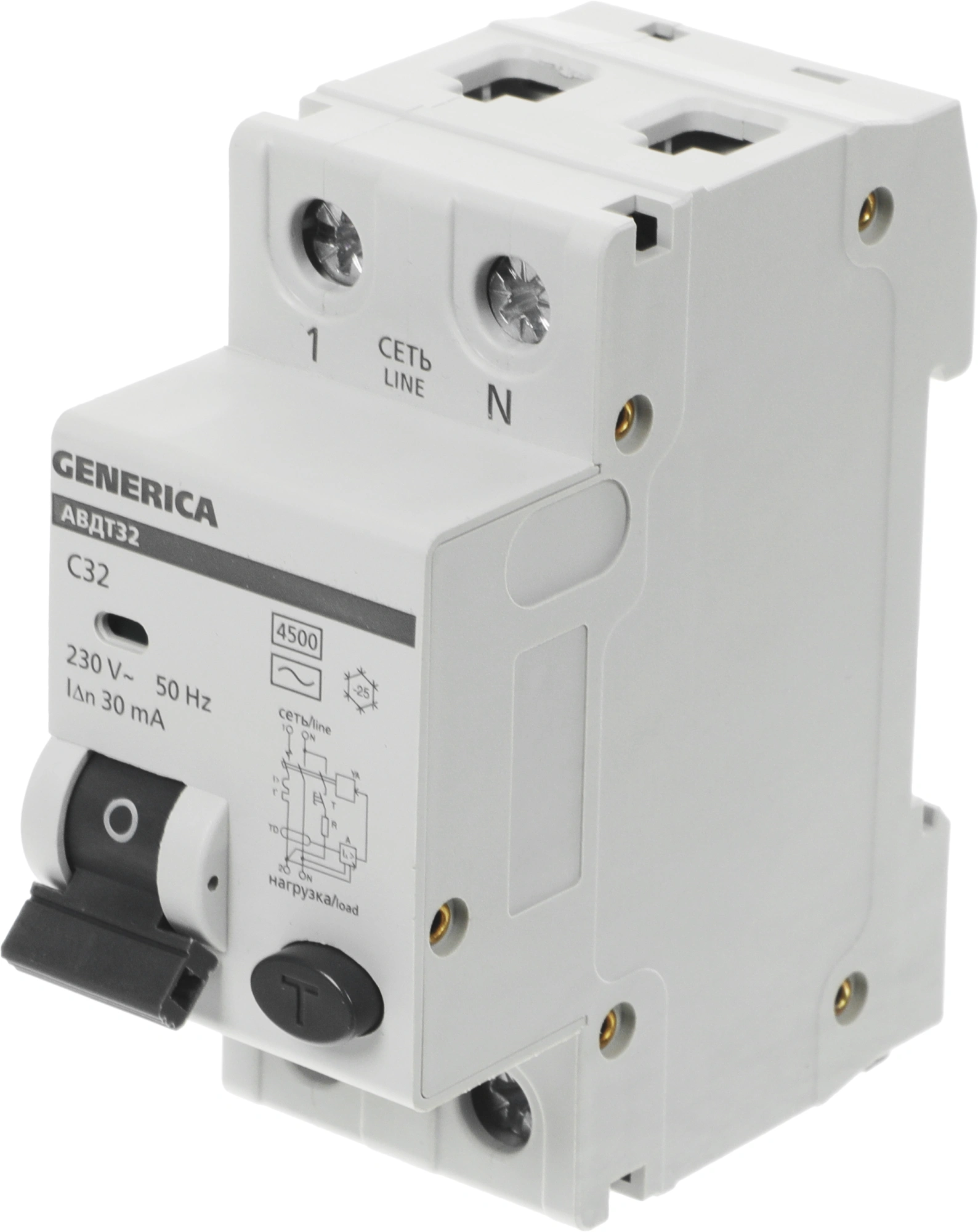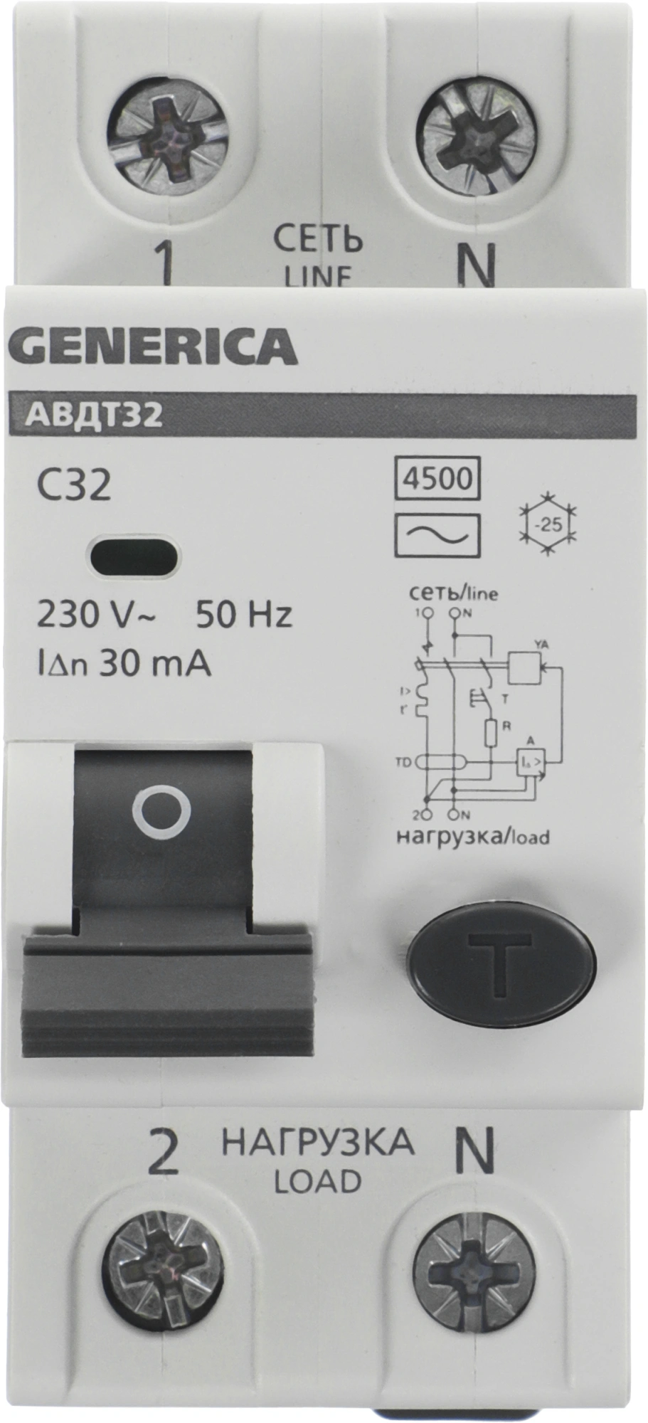 32A тип C 6kA 30мА AC 2П 230В 2мод серый (упак.:1...