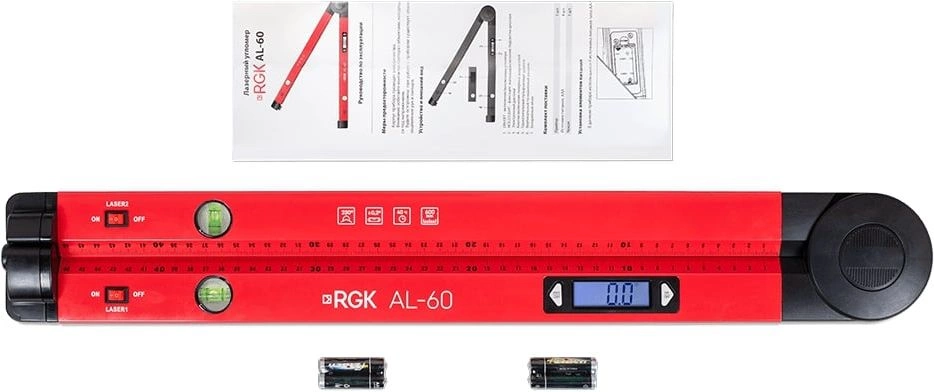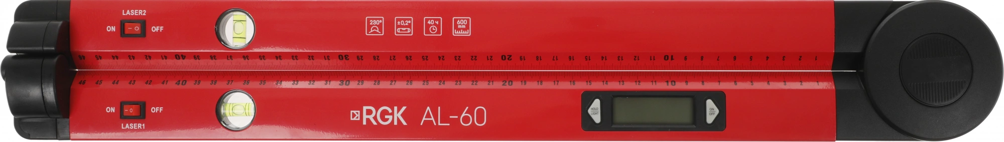 Угломер RGK AL-60 используется при проведении строительных, монтажных, ремонтных и отделочных работ, изготовлении мебели, плотничном деле и т.д. Ключевое преимущество модели - 2 лазерных излучателя для легкого и быстрого переноса разметки с одной плоскости на другую.