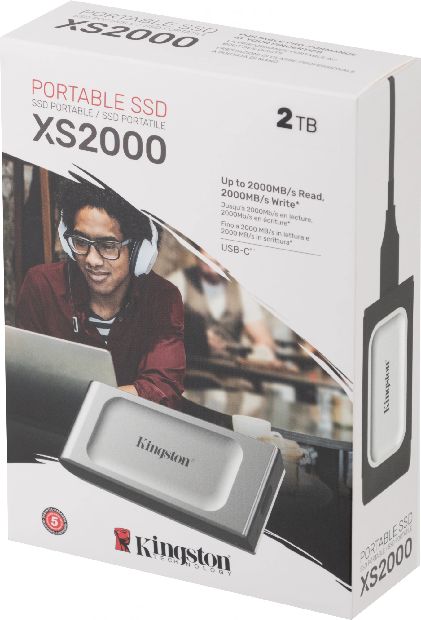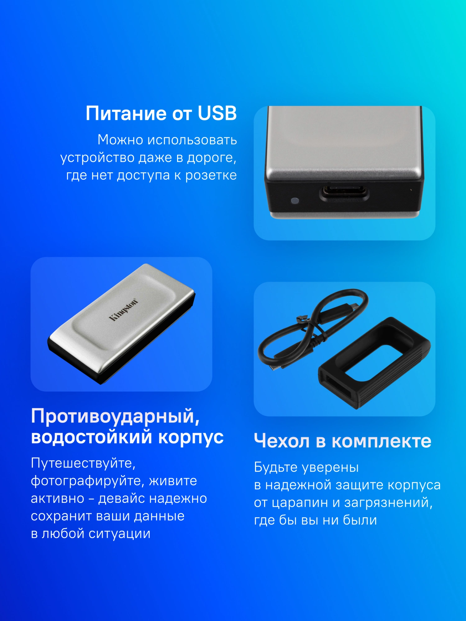 внешний диск, кабель USB-C - USB-C 30 см, резиновый чехол