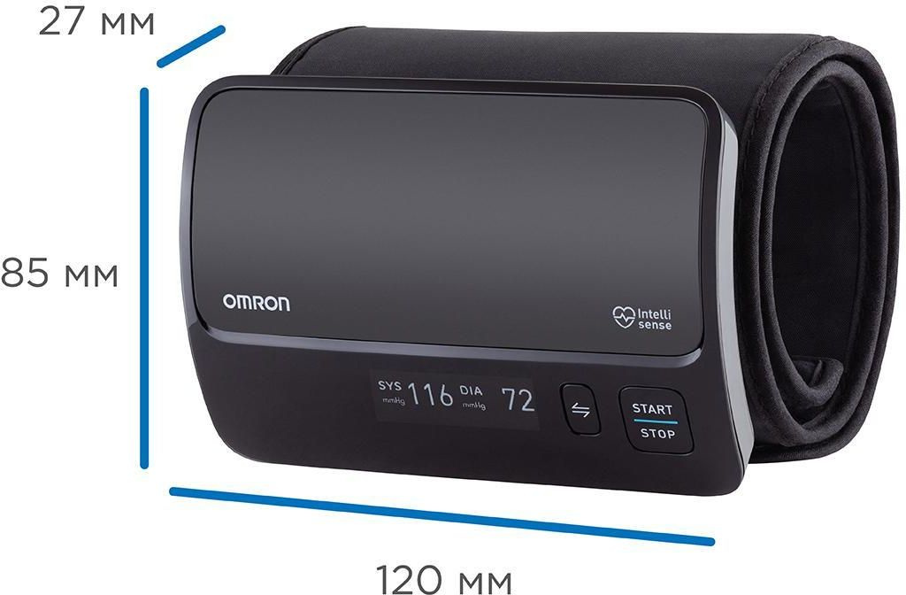 подключается к смартфону с помощью приложения Omron Connect для комфортного хранения и управления данными о состоянии здоровье.