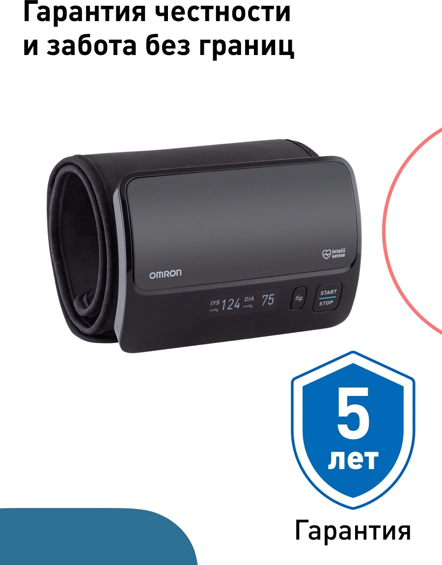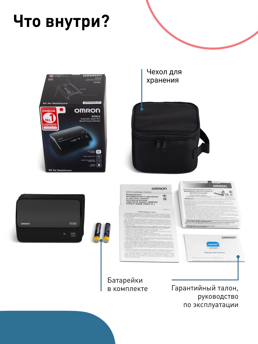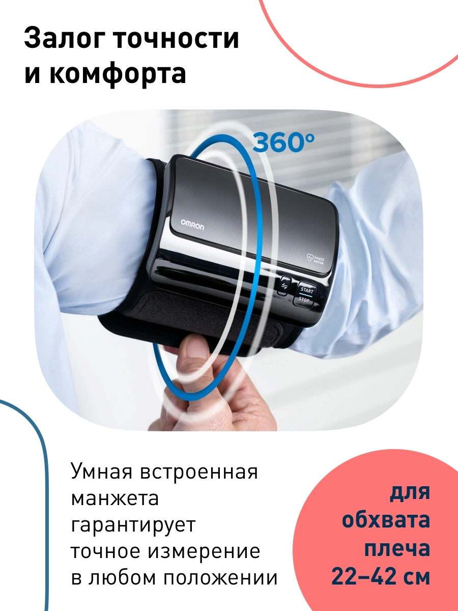 подключается к смартфону с помощью приложения Omron Connect для комфортного хранения и управления данными о состоянии здоровье.