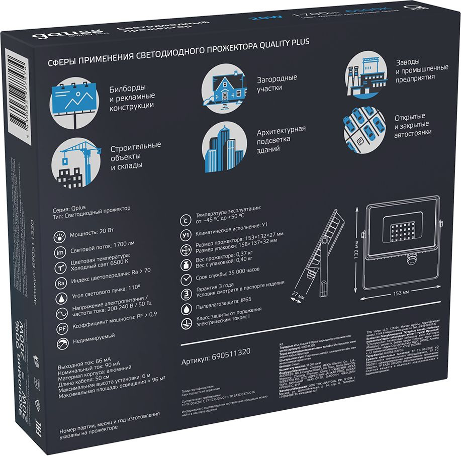 Прожектор уличный Gauss Qplus светодиодный 20Втсерый (690511320)