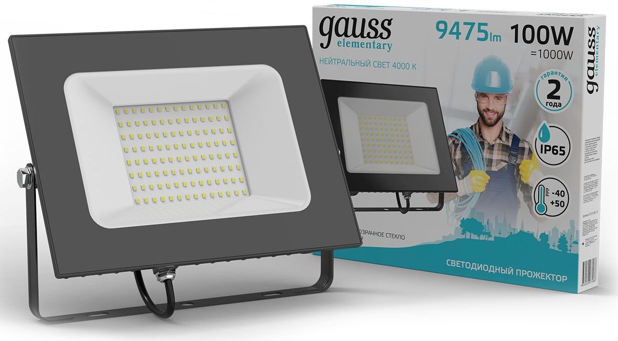 Прожектор уличный Gauss Elementary светодиодный 100Втчерный (613100110)