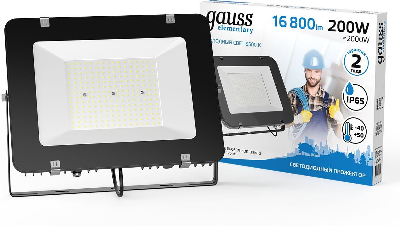 Прожектор уличный Gauss Elementary светодиодный 200Втчерный (691511200)