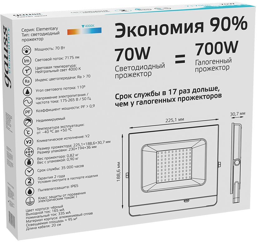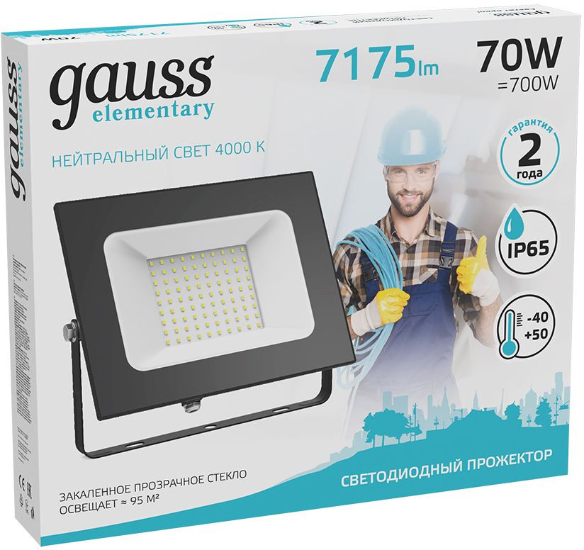Прожектор уличный Gauss Elementary светодиодный 70Втчерный (613100270)