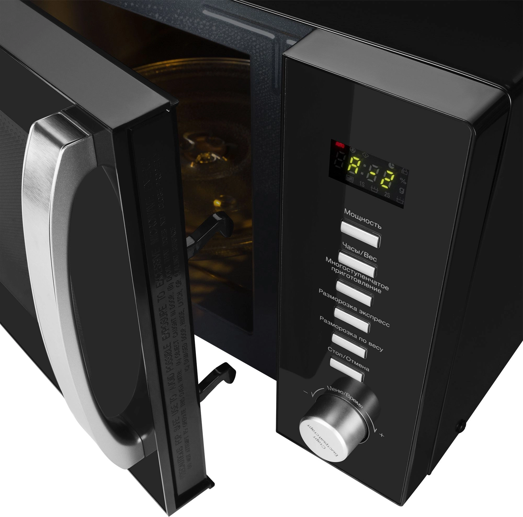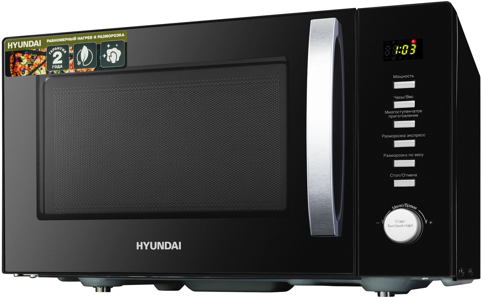 Микроволновая печь HYM-D3028 объёмом 23 литра станет незаменимым помощником на вашей кухне. Работает с мощностью 800 Вт, а с её электронным управлением справится даже ребёнок. На дисплее отображается выбранный режим и время запуска, а для открывания дверцы предусмотрена ручка. Поворотный стол изготовлен из жаропрочного стекла, а внутреннее покрытие камеры - из эмали лёгкой очистки. Благодаря этому удаление жира и налёта не займёт у вас много времени. Вы можете оставить полуфабрикаты на разморозку или разогреть обед, а при необходимости поставить микроволновую печь на паузу. После завершения работы будет подан звуковой сигнал, а внутренняя подсветка позволит контролировать весь процесс. В комплекте есть вращающиеся кольцо и стеклянный поддон.