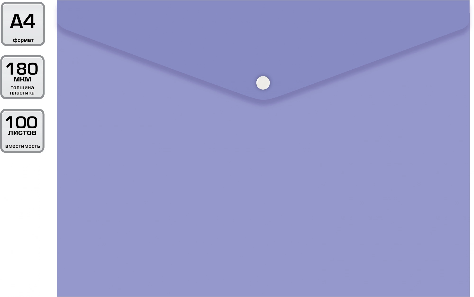 Конверт на кнопке Бюрократ Pastel -PKPAST/VIO A4 пластик 0.18мм фиолетовый