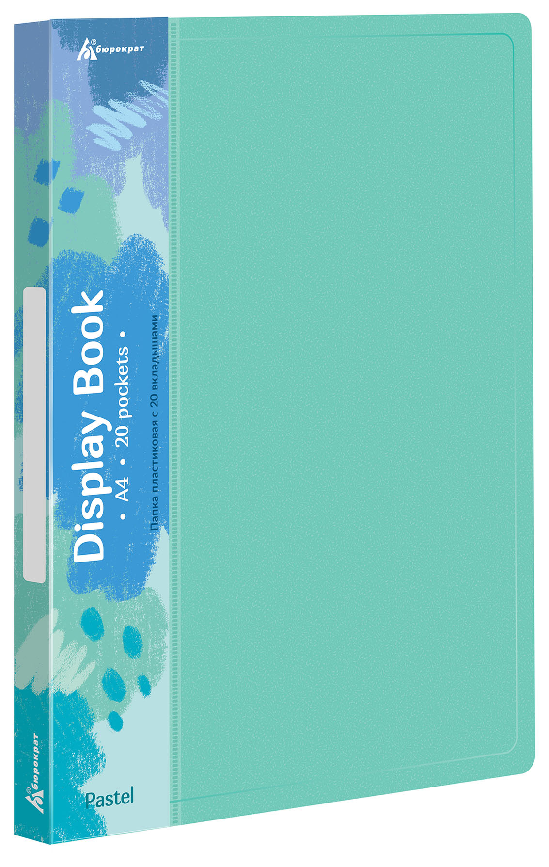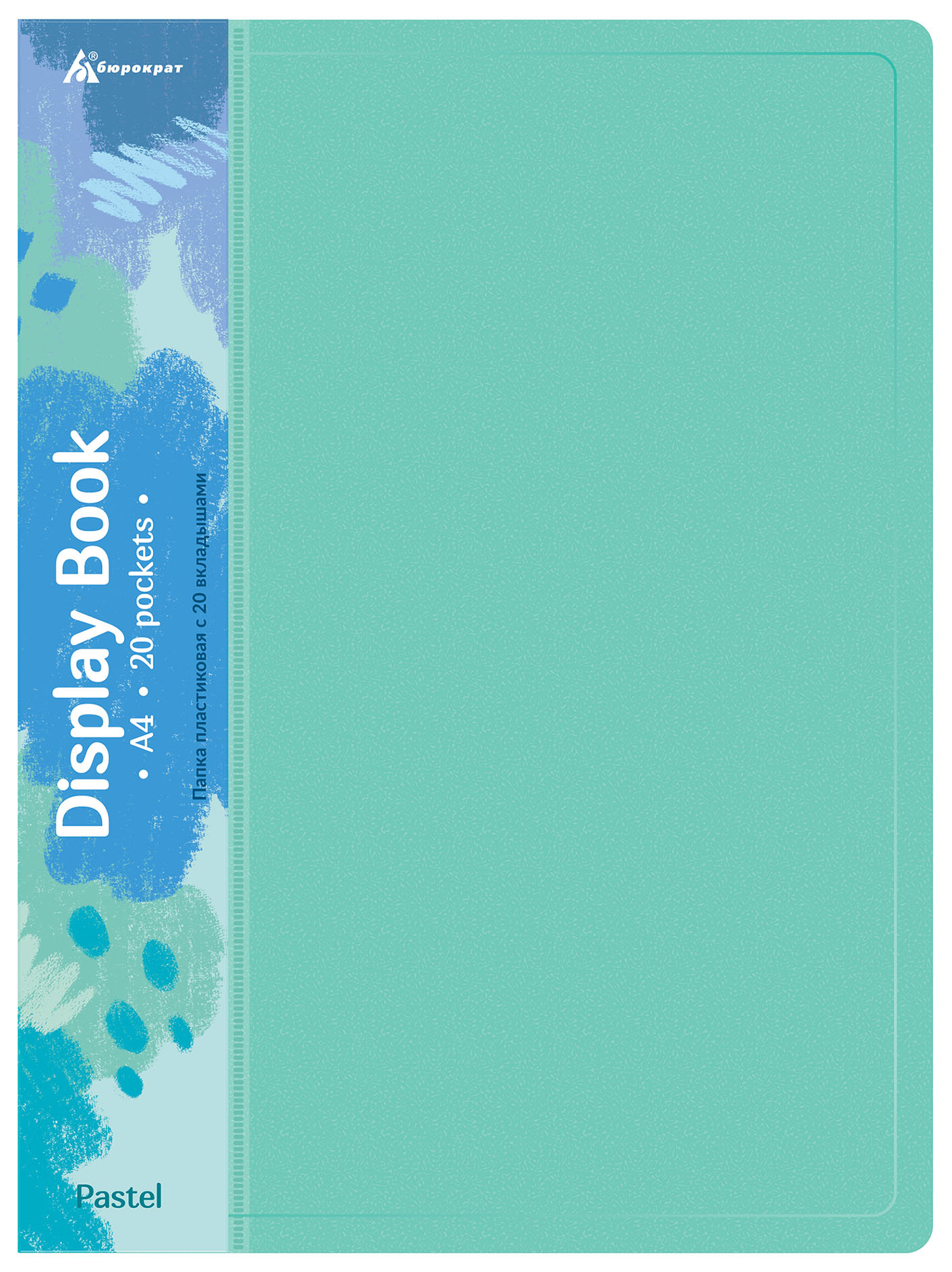 Папка с 20 прозр.вклад. Бюрократ Pastel PAST20GRN A4 пластик 0.5мм торц.карм с бум. встав мятный