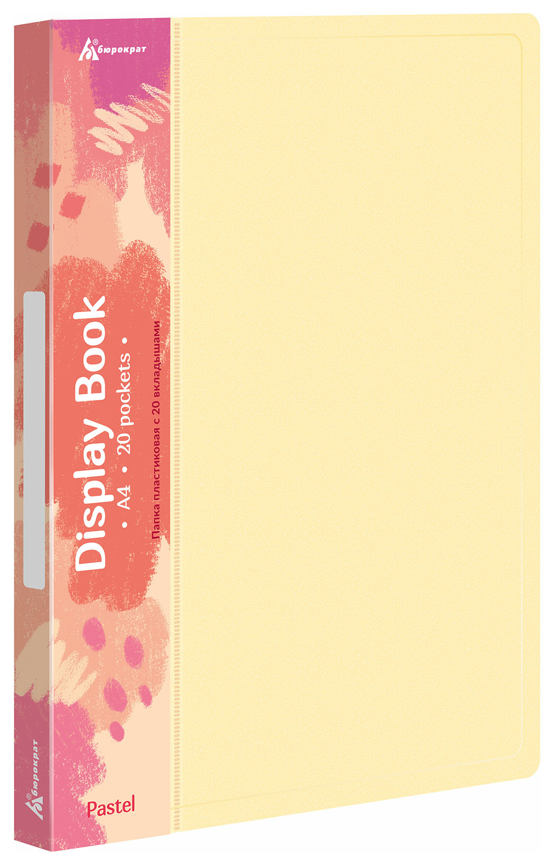 Папка с 20 прозр.вклад. Бюрократ Pastel PAST20YEL A4 пластик 0.5мм торц.карм с бум. встав желтый