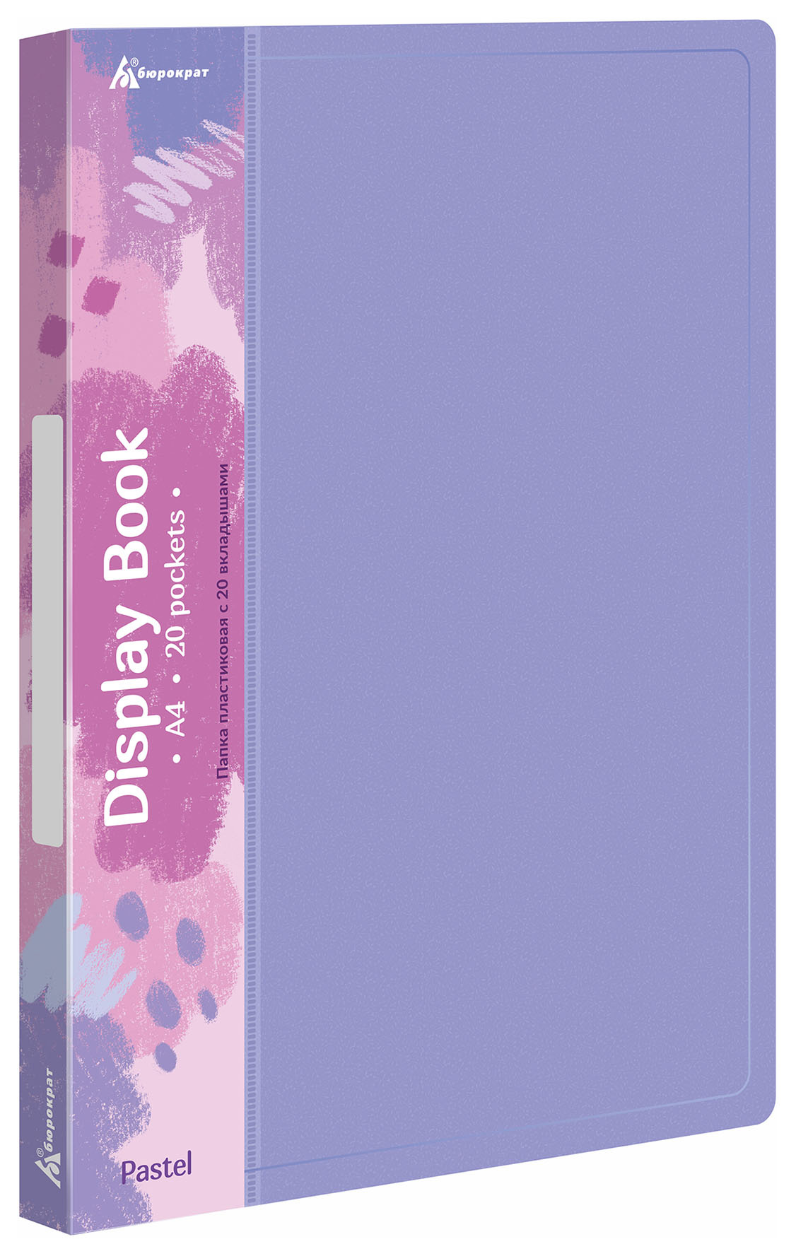 Папка с 20 прозр.вклад. Бюрократ Pastel PAST20VIO A4 пластик 0.5мм торц.карм с бум. встав фиолетовый