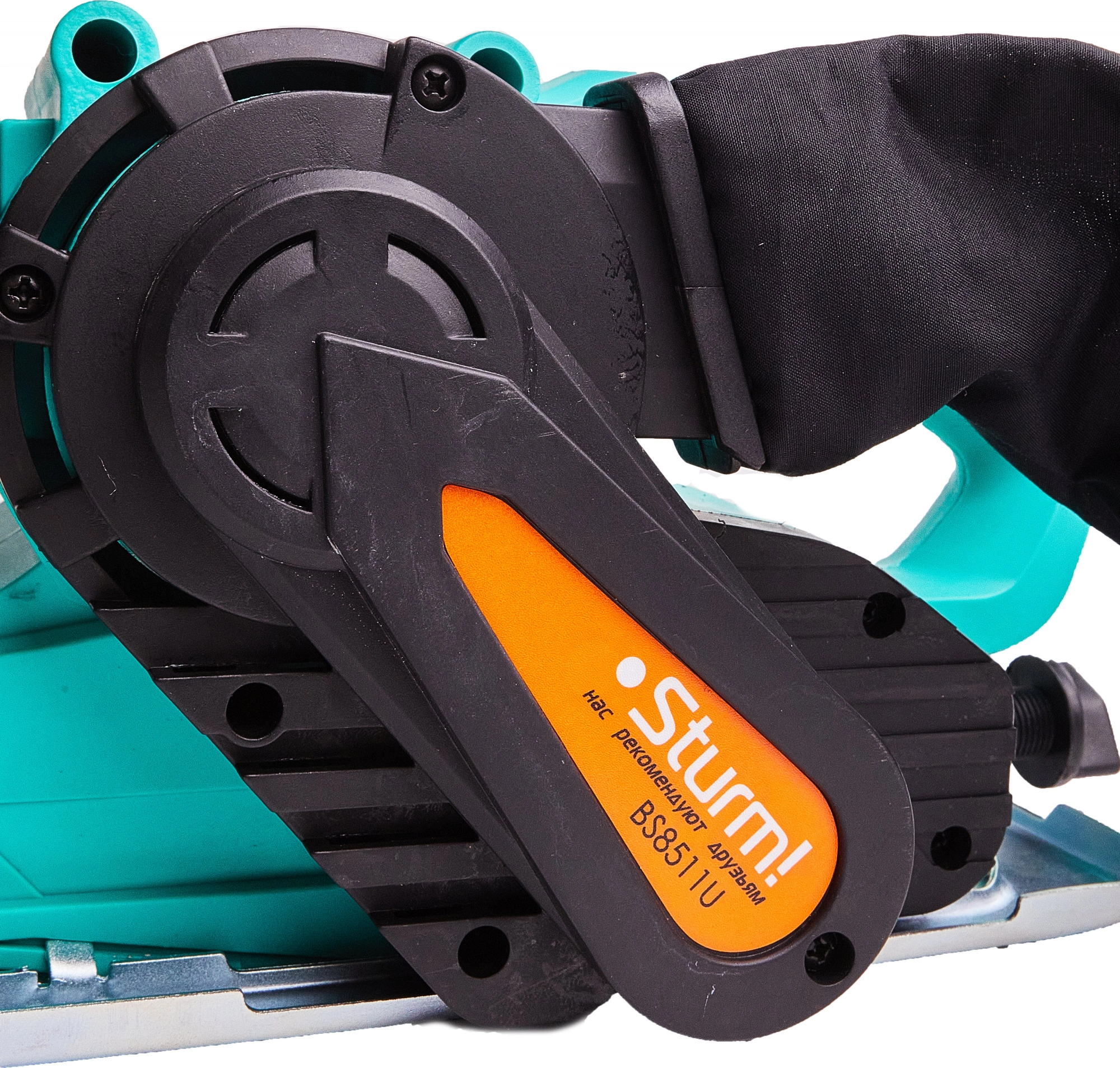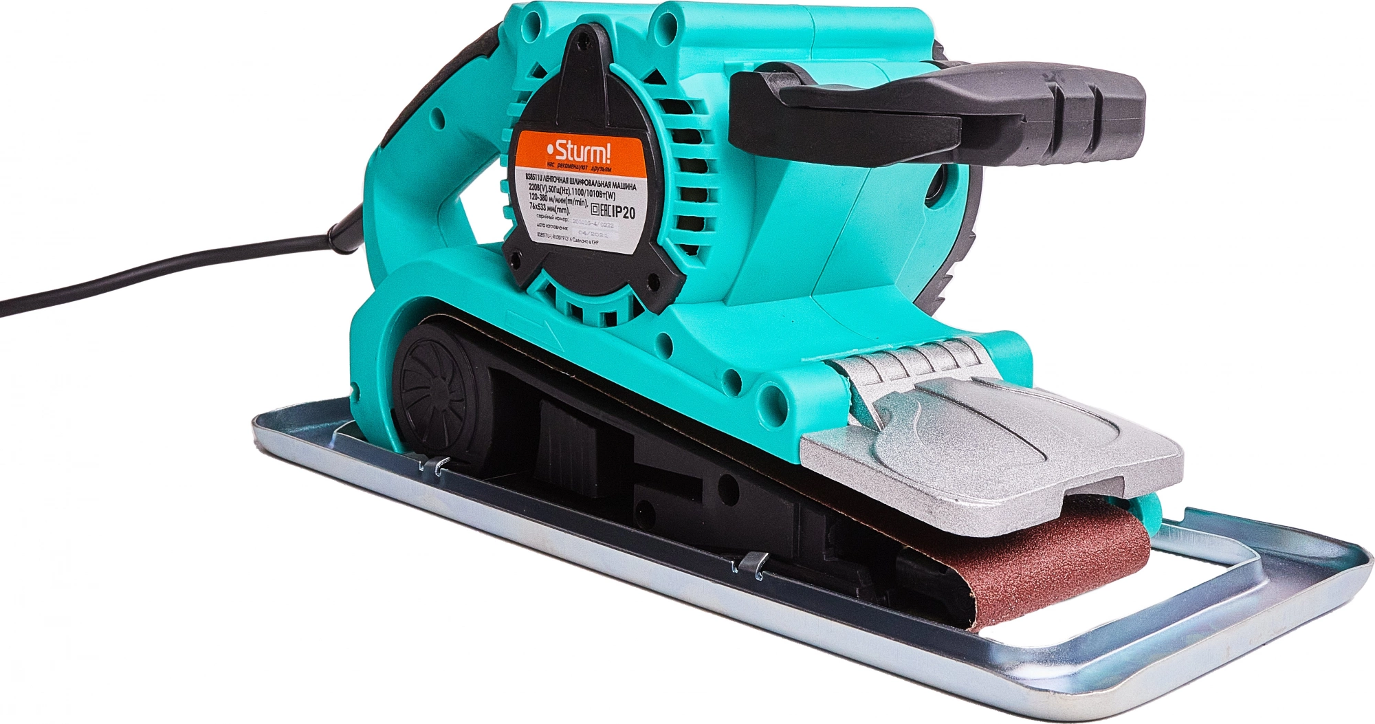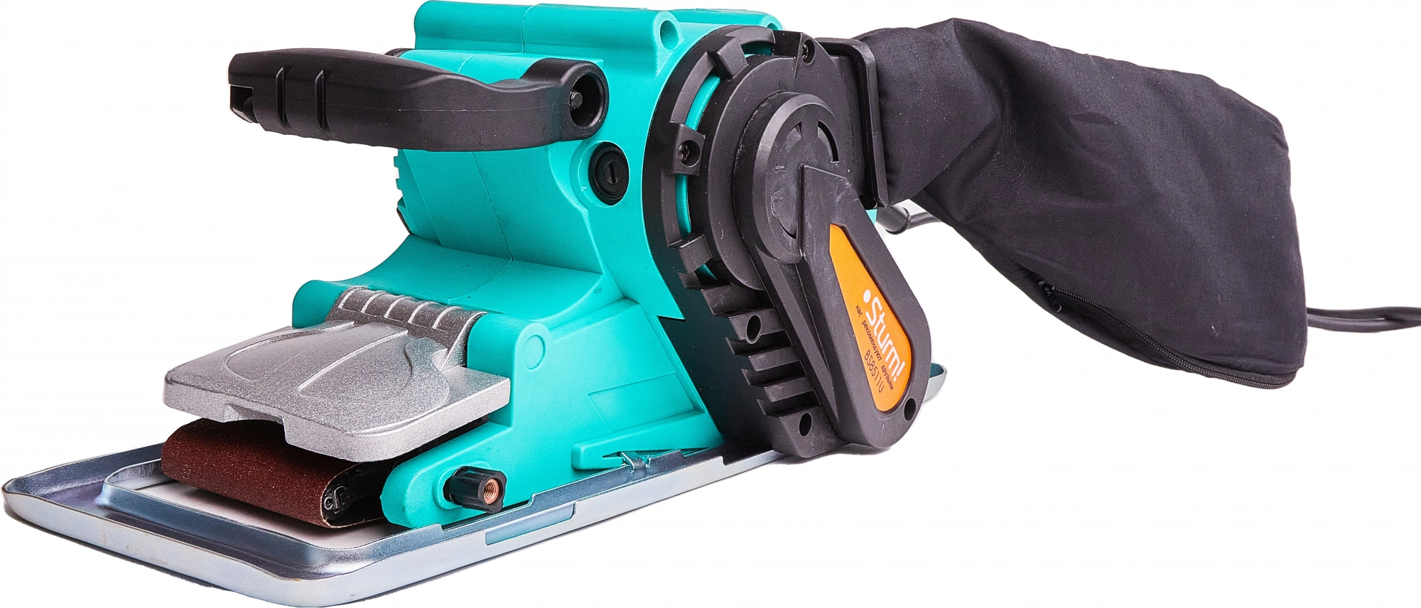 Шлифмашина, запасная угольная щетка, пылесборник, шлифовальная лента, запасной ремень.