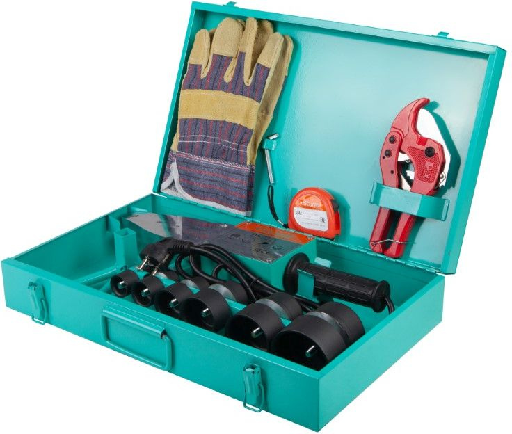 В комплектацию входят: труборез, сварочные насадки (6 комплектов), перчатки, рулетка, отвертка, шестигранный гаечный ключ.
