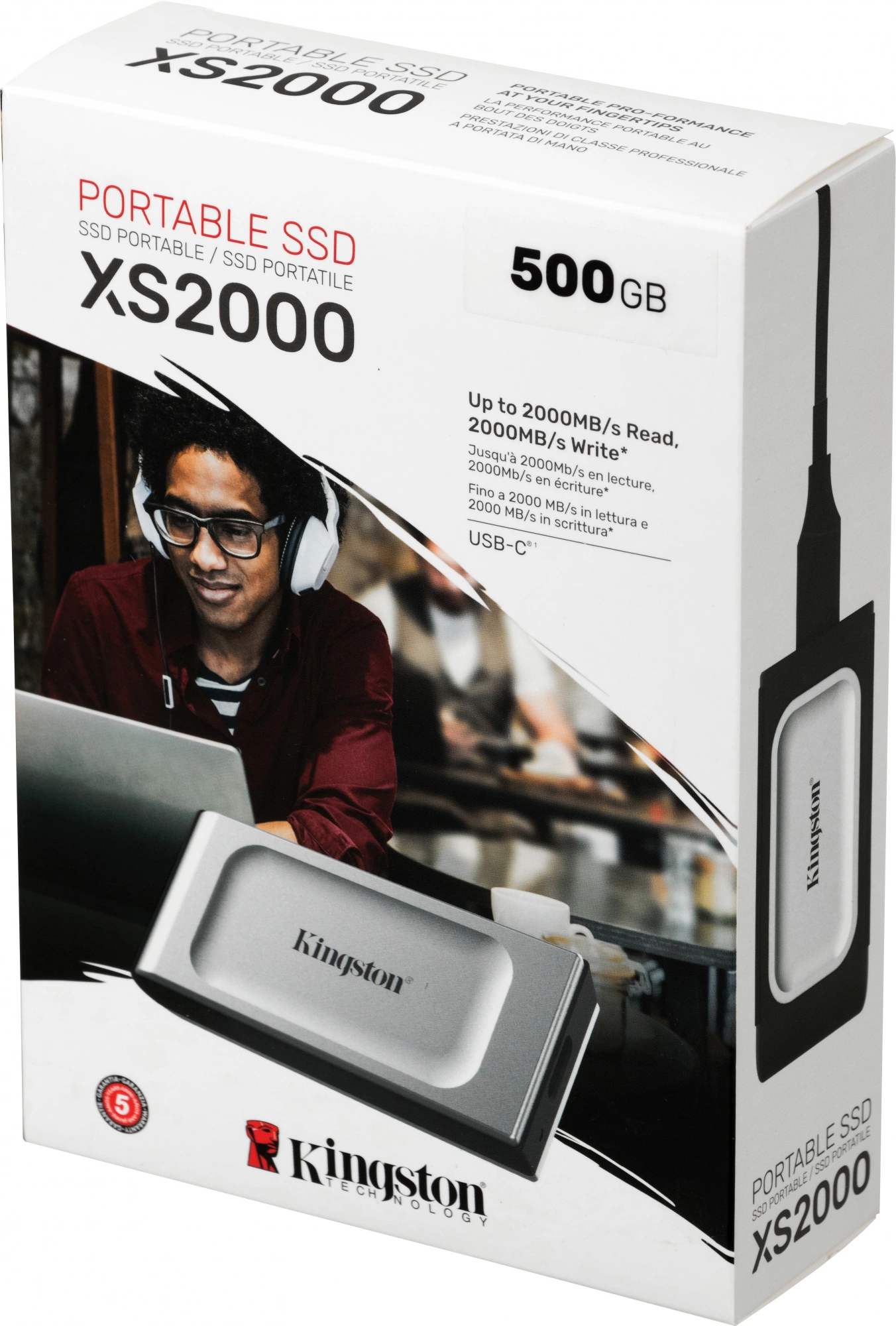 внешний диск, кабель USB-C - USB-C 30 см, резиновый чехол