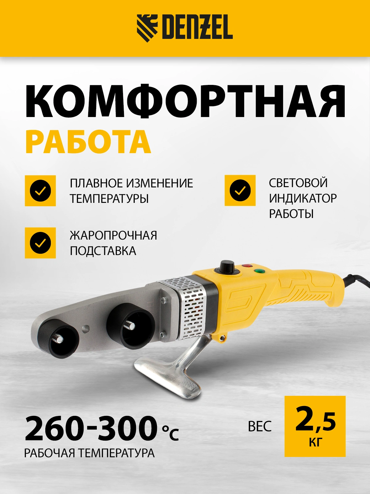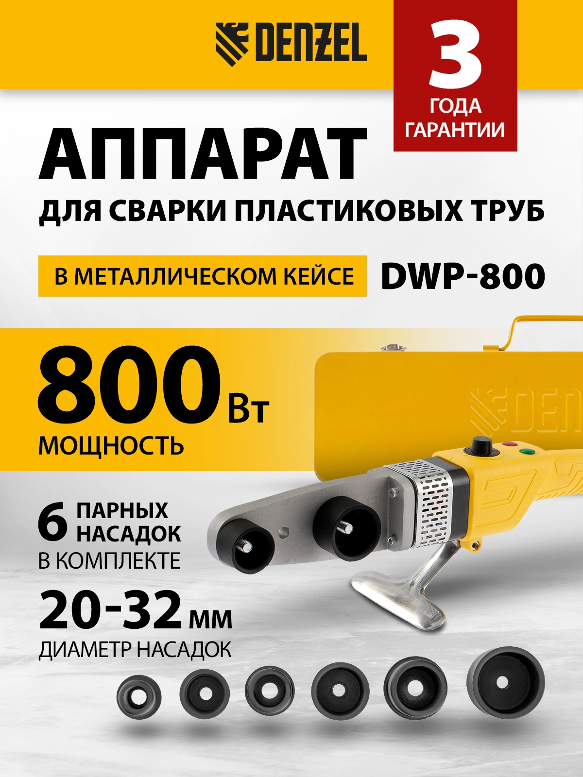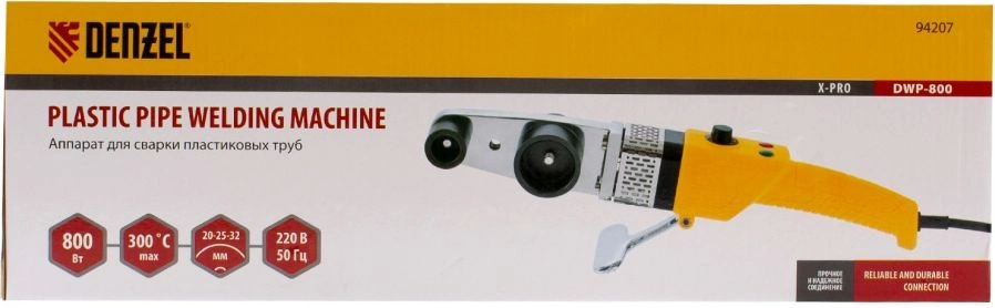 Аппарат для сварки пластиковых труб Denzel DWP-800 X-PRO используется для сварки полиэтиленовых и полипропиленовых труб путем нагрева/размягчения и последующего соединения под давлением. Он подходит для: самостоятельного обновления водопровода, ремонта труб, монтажа отопительной системы.