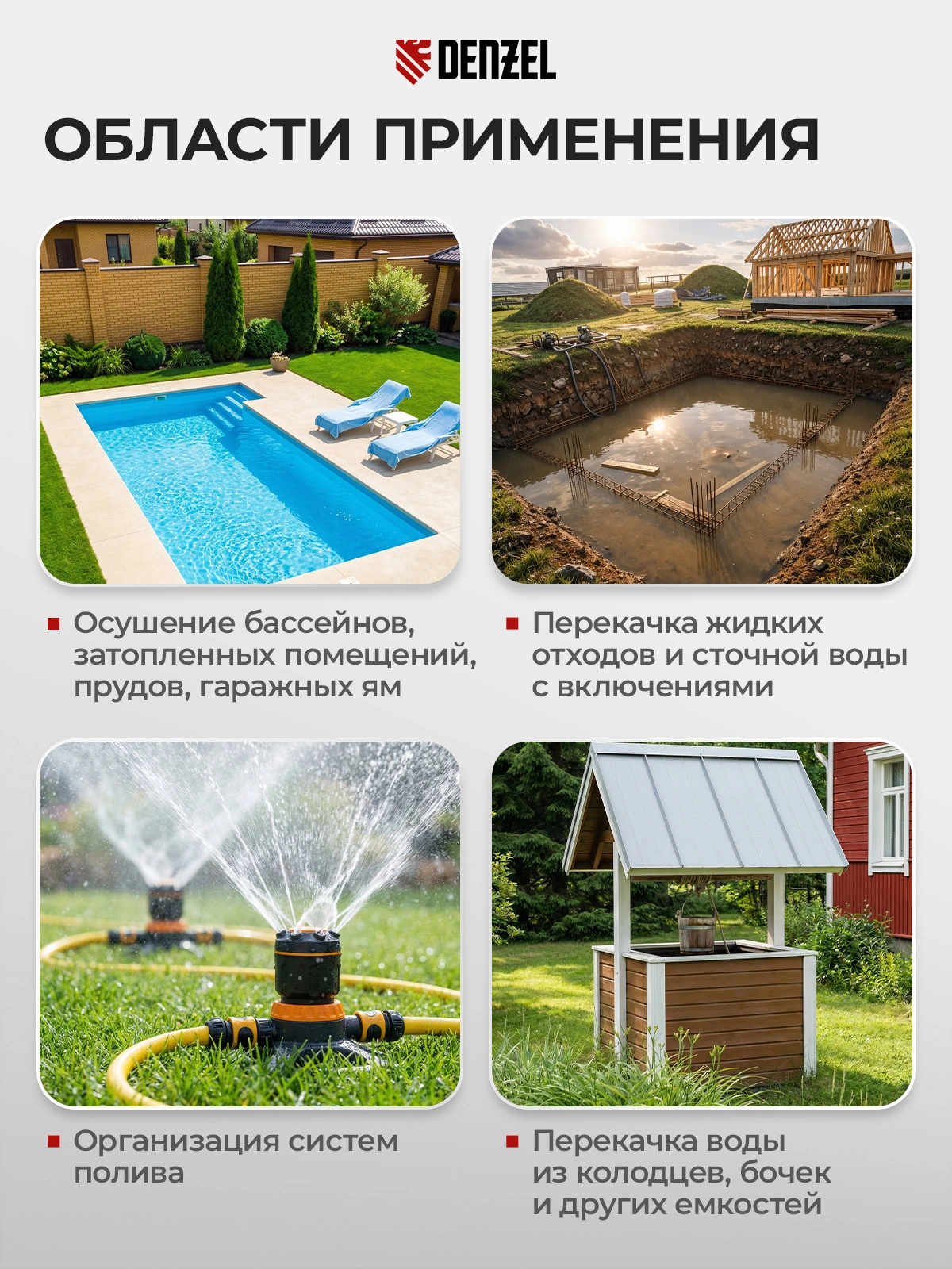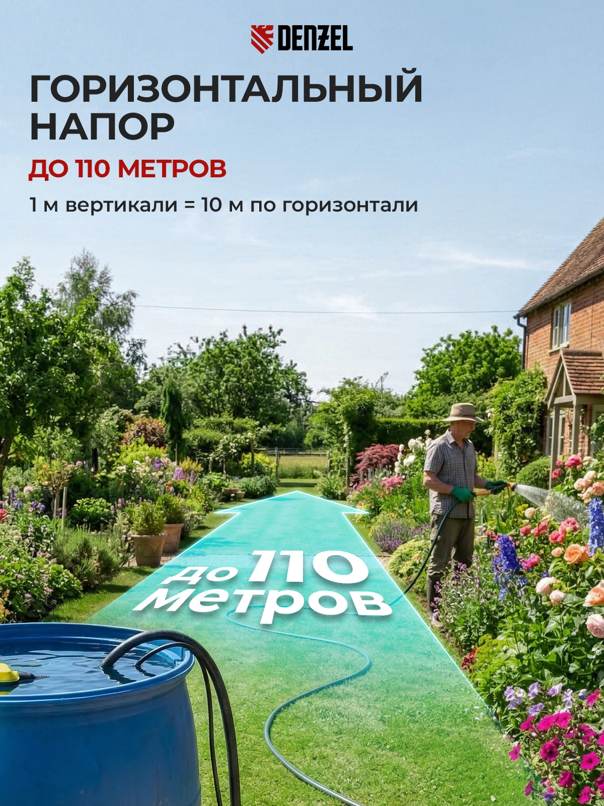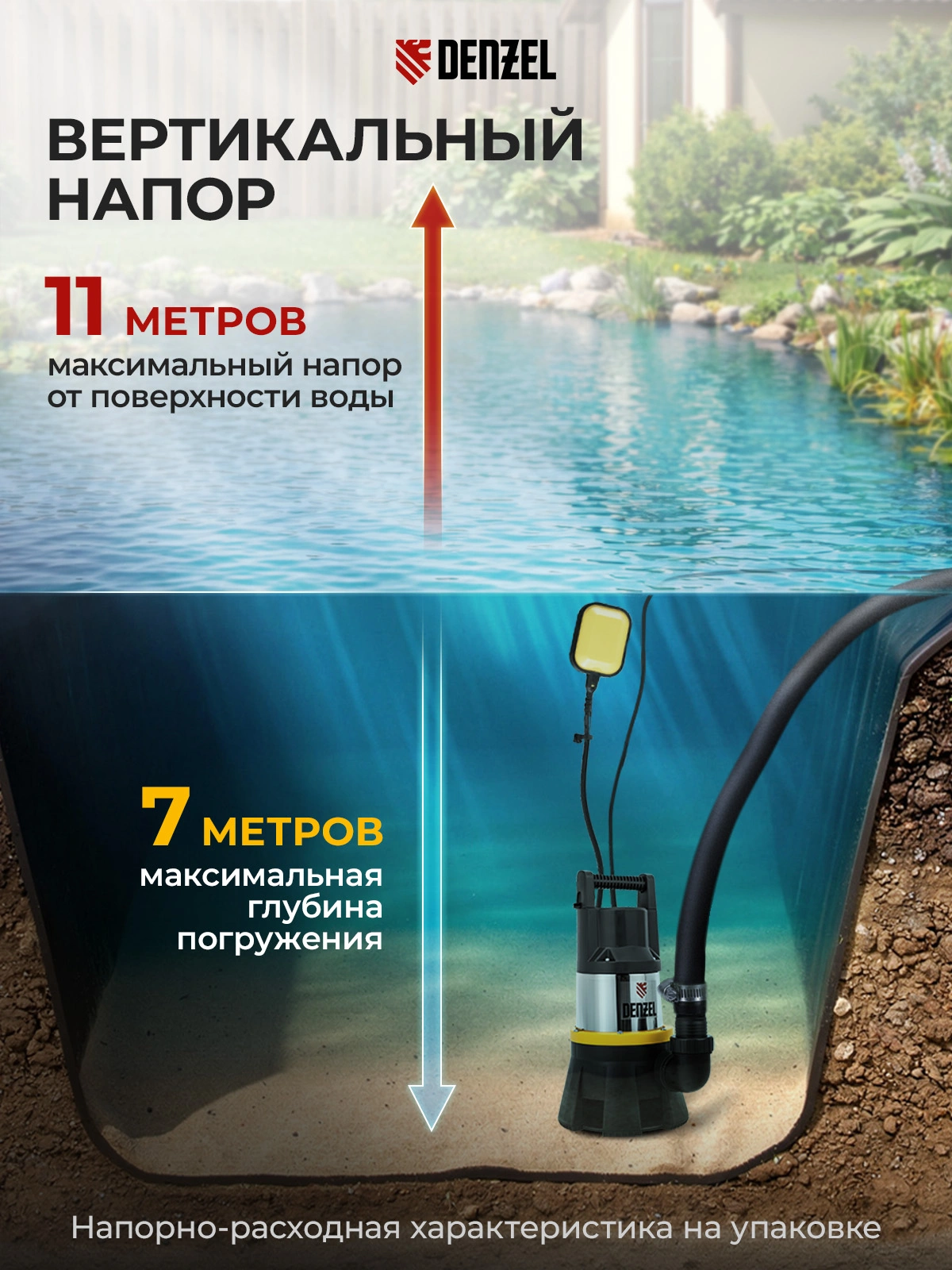 Самый мощный насос Denzel DP1400X в линейке 1400 Вт с усиленным импеллером обеспечит качественную систему водоснабжения или орошения. Также его можно использовать для откачки сильно загрязненной воды с твердыми включениями до 40 мм.
