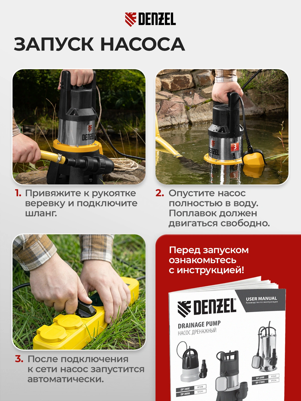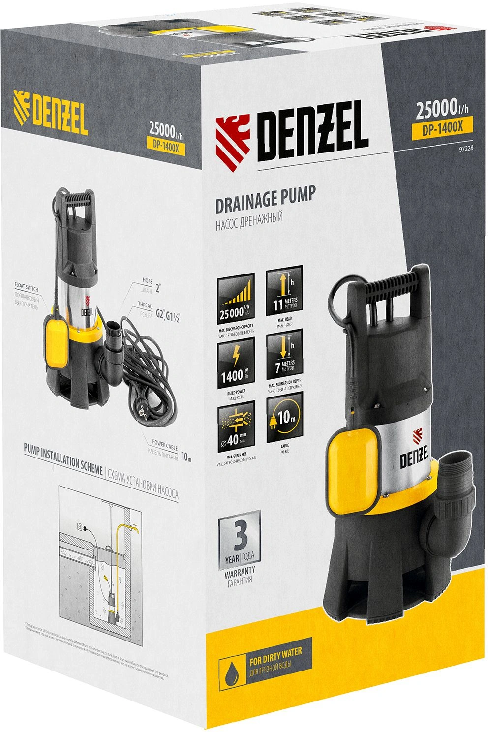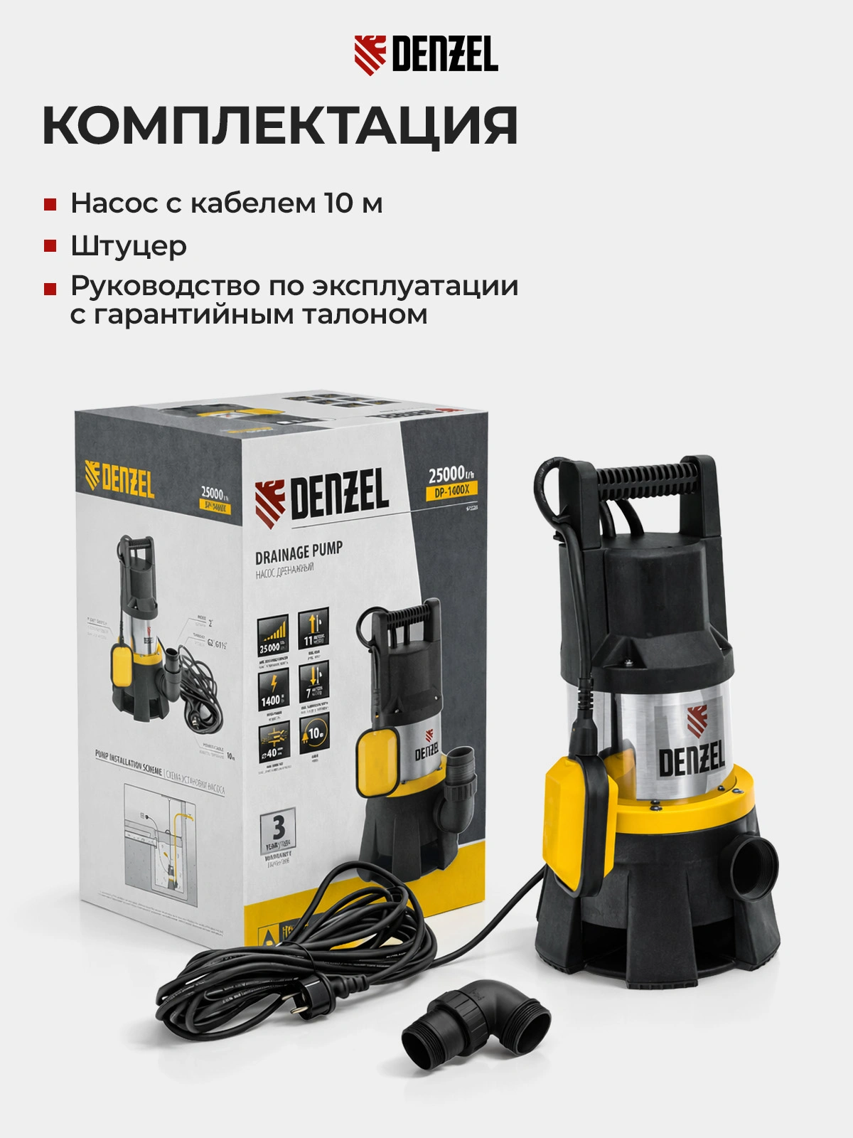 Самый мощный насос Denzel DP1400X в линейке 1400 Вт с усиленным импеллером обеспечит качественную систему водоснабжения или орошения. Также его можно использовать для откачки сильно загрязненной воды с твердыми включениями до 40 мм.