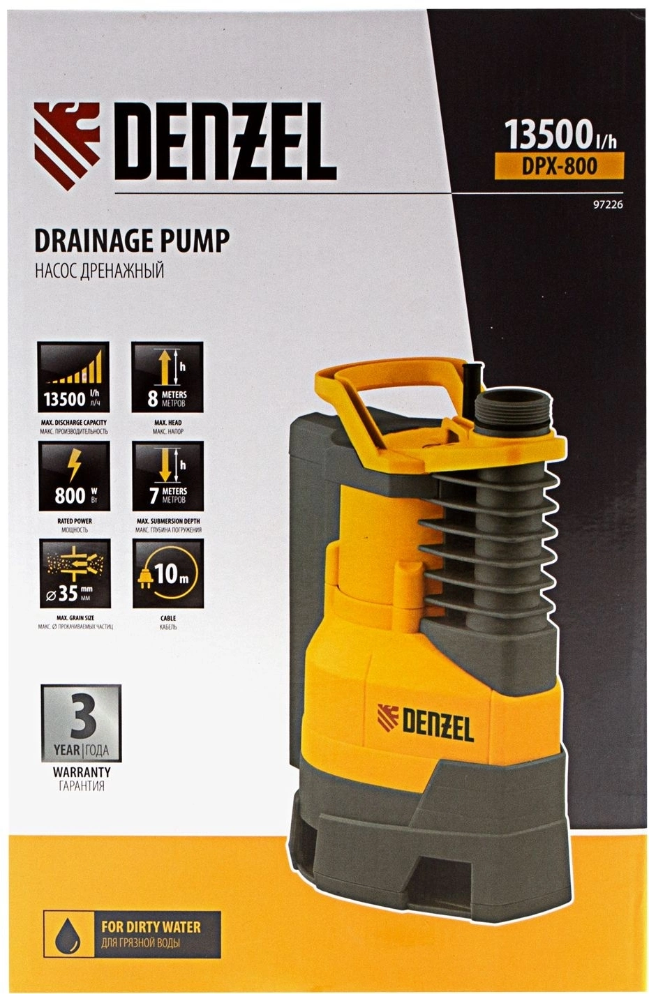 Мощный насос Denzel DPХ800 800 Вт. применяется для организации системы водоснабжения и орошения на даче или в загородном доме. Также используется для откачки грязной воды с фракциями до 35 мм. из подвалов и канав.