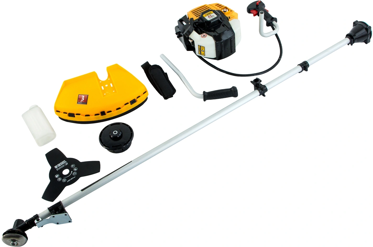 Триммер бензиновый, катушка, нож трехлопастной 3Т, одноплечевой ремень, дозатор для приготовления смеси, набор крепежа, набор инструментов, руководство по эксплуатации с гарантийным талоном.
