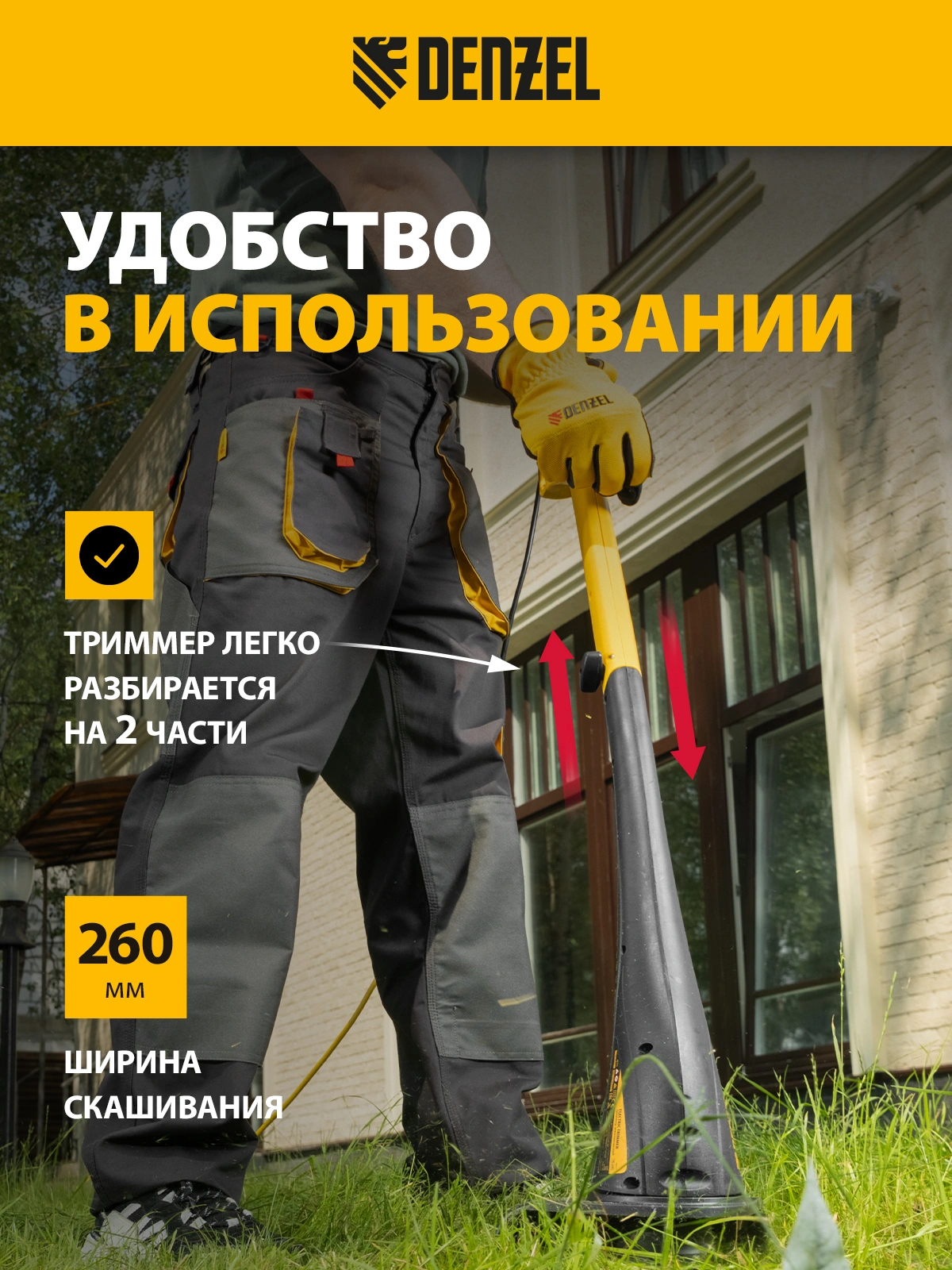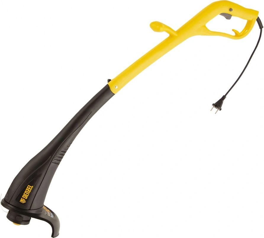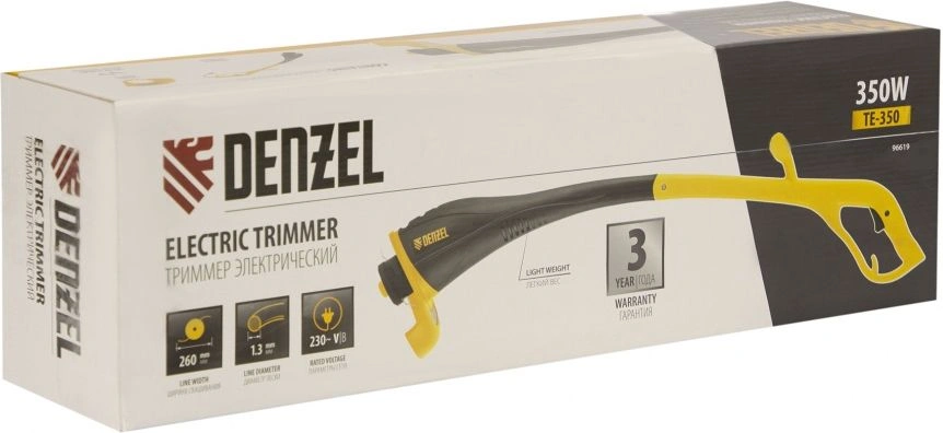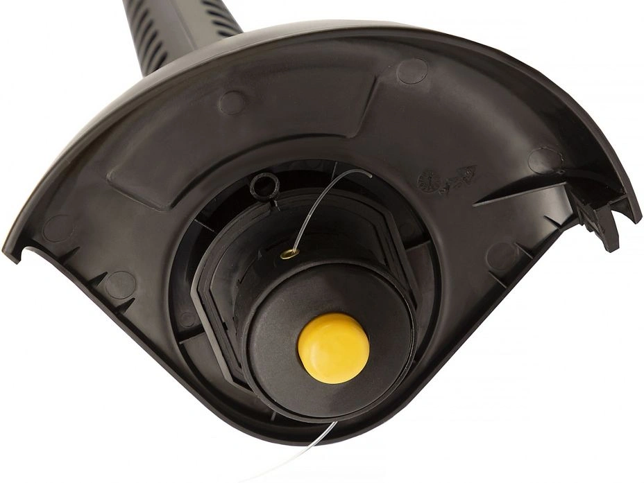 Приводной узел в сборе с катушкой и леской, верхняя часть триммера с рукояткой, кожух защитный, комплект крепежа, руководство по эксплуатации с гарантийным талоном