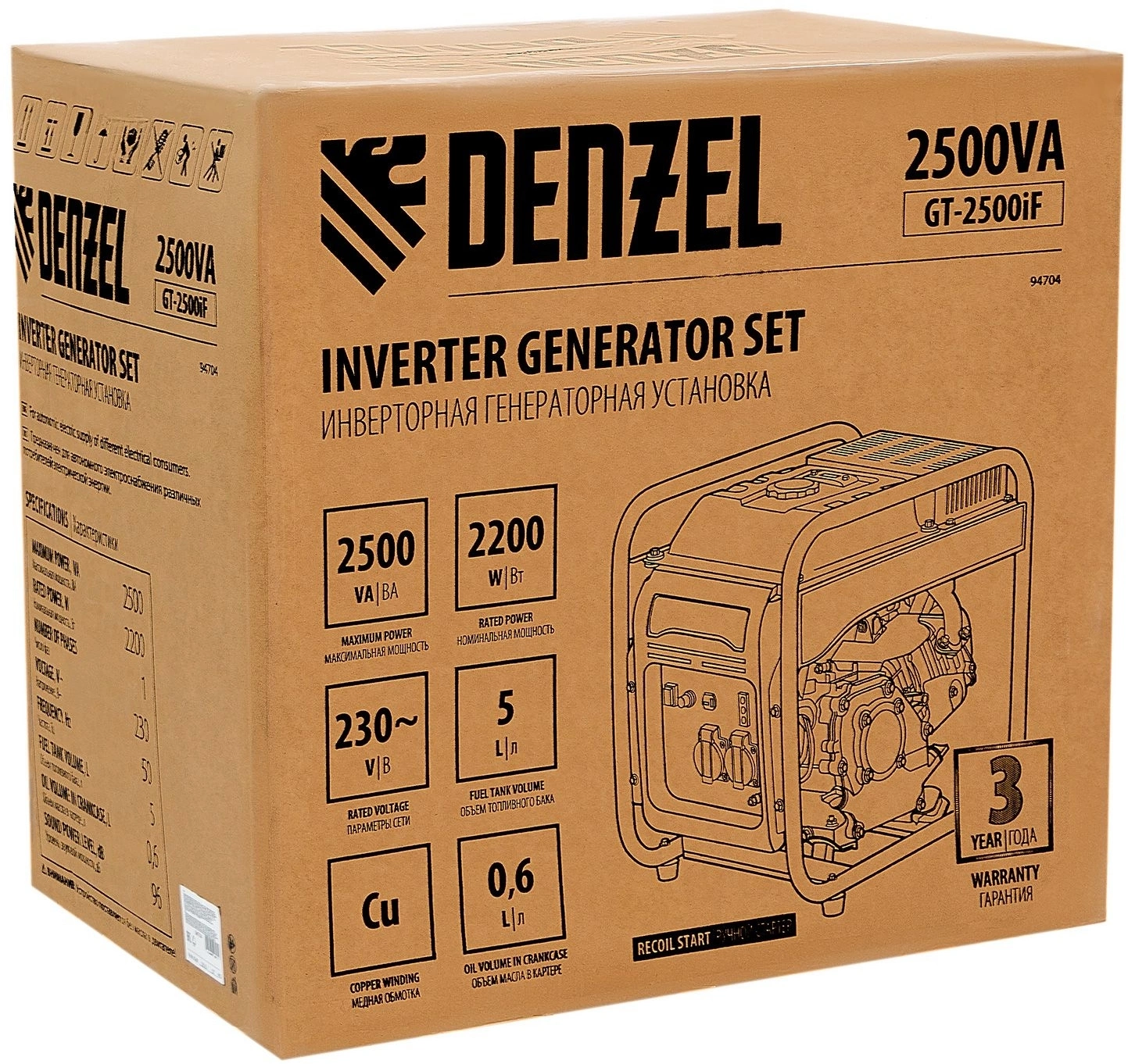 Легкий, компактный и экономичный инверторный генератор Denzel GT-2500iF для дачи, мастерской и выезда на природу. Главное его преимущество - это высокое качество тока, поэтому он часто используется для чувствительной электроники и приборов, восприимчивых к перепадам напряжения.