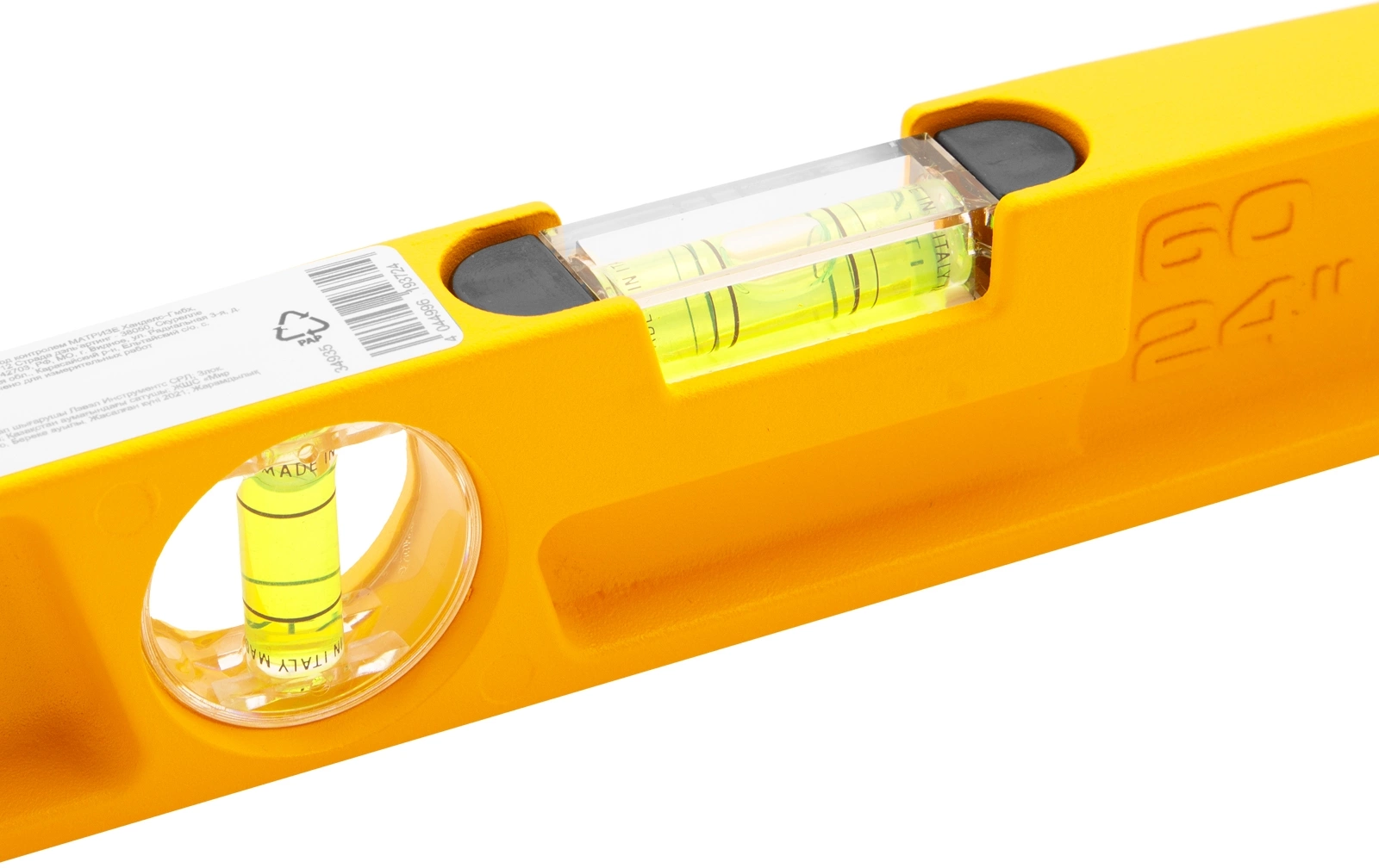 Корпус уровня изготовлен методом литья. Ударные площадки на обоих концах. Модель имеет два глазка для проверки отклонений по горизонтали и вертикали. Точность измерений 0.5 мм/м.