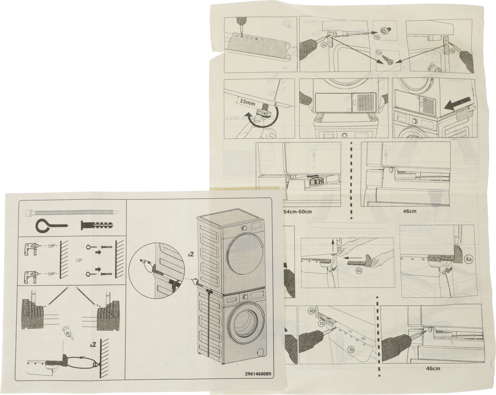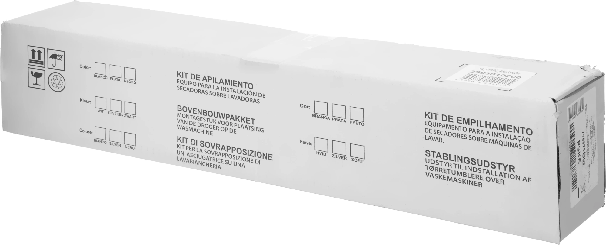 Стыковочный комплект для установки сушильной машины поверх стиральной PSKS, подходит для установки сушильной машины глубиной 46 см поверх стиральной машины глубиной от 40 см. Совместим с любыми брендами группы Arcelik (Beko, Hotpoint, Indesit)