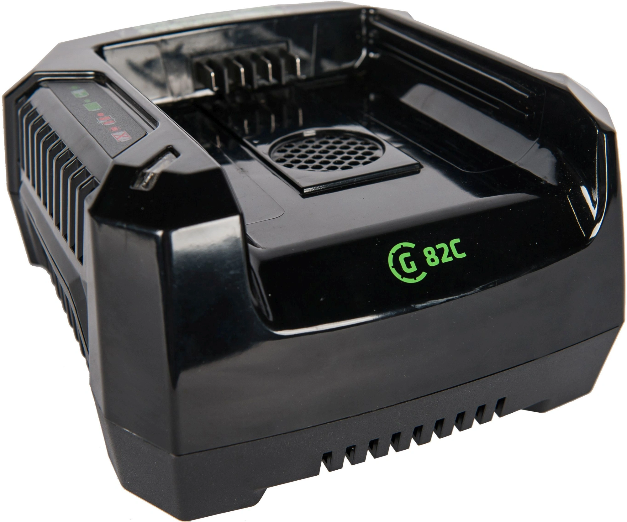 Зарядное устройство (модель G82C) - применяется для зарядки аккумуляторов Greenworks с напряжением 82 вольта. Зарядка поддерживает функцию быстрой зарядки и имеет активное охлаждение - кулер. Чип для защиты от перезарядки.