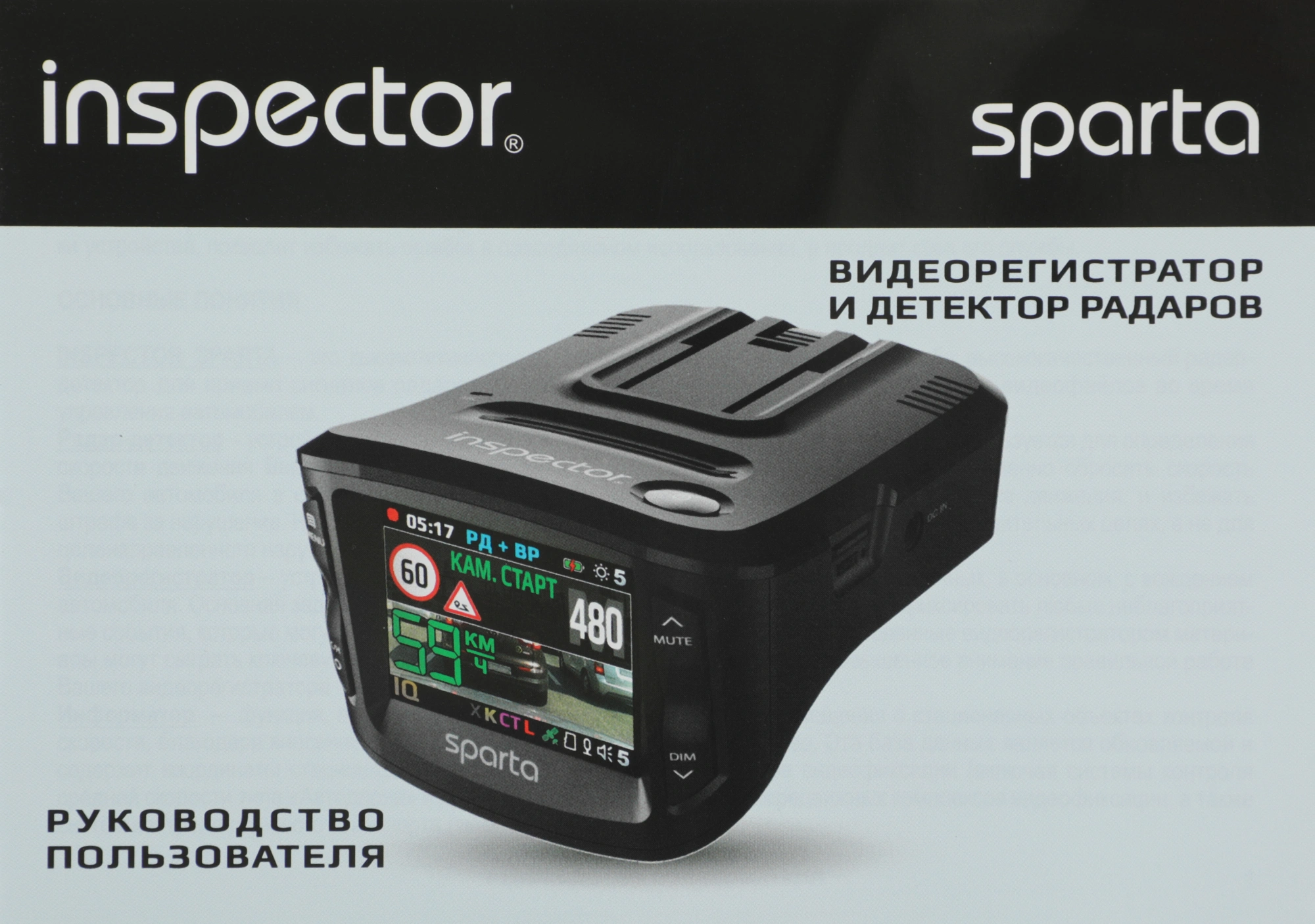 Видеорегистратор с радар-детектором Inspector SPARTA, крепление на лобовое стекло, кабель питания от прикуривателя, инструкция, гарантийный талон