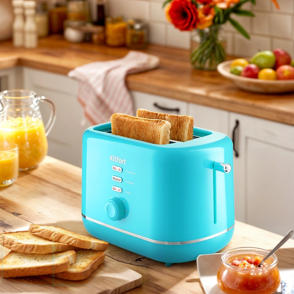 Тостер Kitfort КТ-2050 создан для тех, кто любит полакомиться ароматным и хрустящим поджаренным хлебом. Особый вкус и цвет тостов получаются такими благодаря карамелизации сахара, содержащегося в муке, в процессе приготовления.