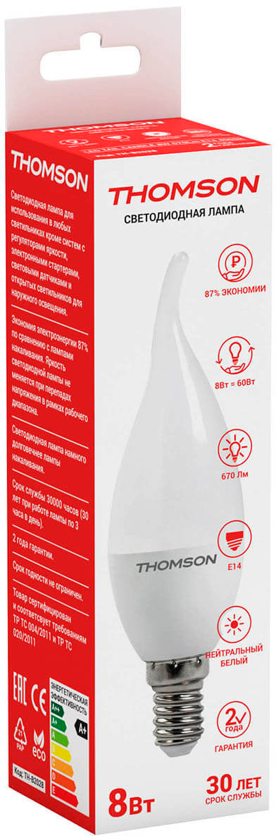 8Вт цок.:E14 свеча 220B св.свеч.бел.нейт. Tail Ca...