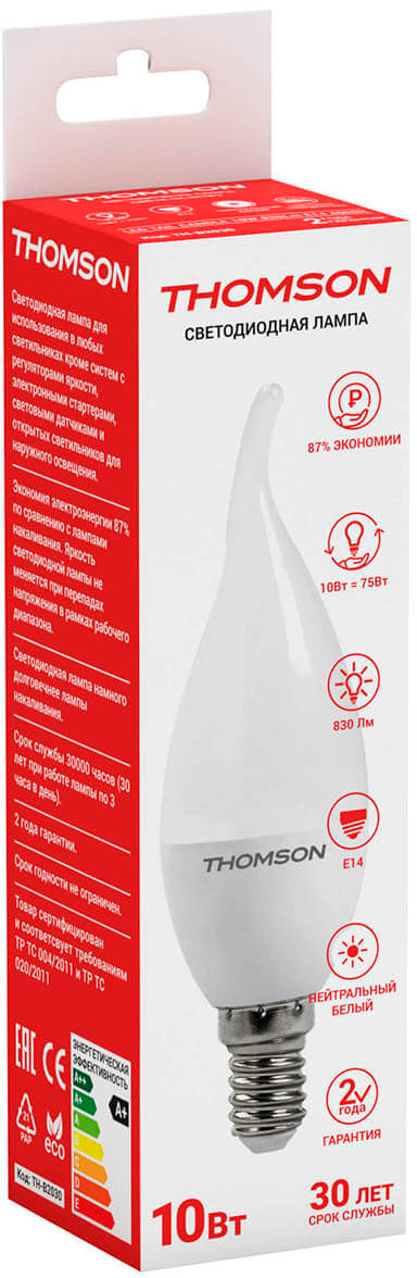 10Вт цок.:E14 свеча 220B св.свеч.бел.нейт. Tail C...